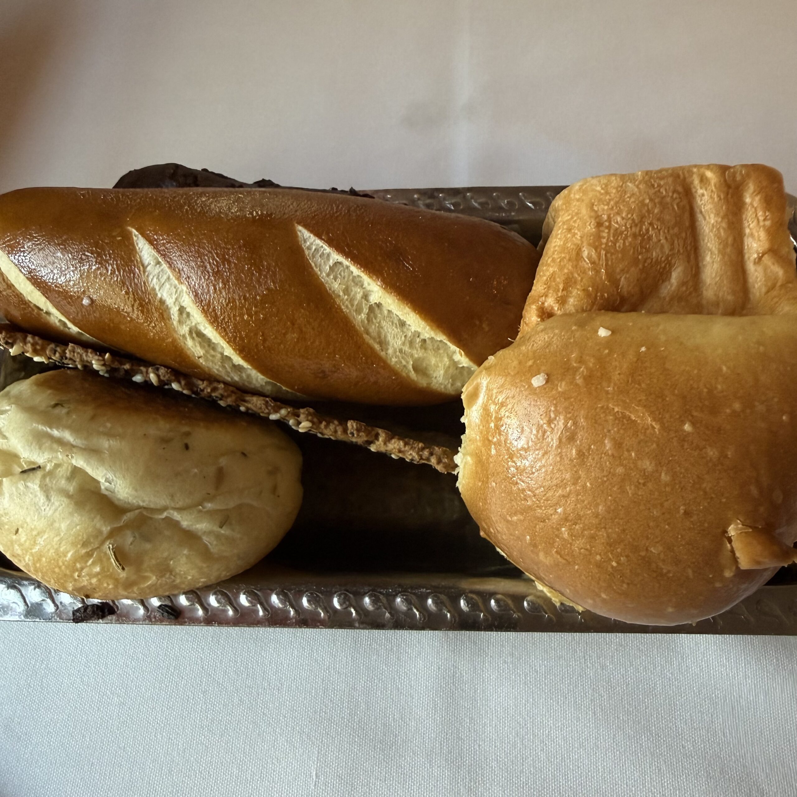A freshly baked basket of assorted rolls is immediately delivered.