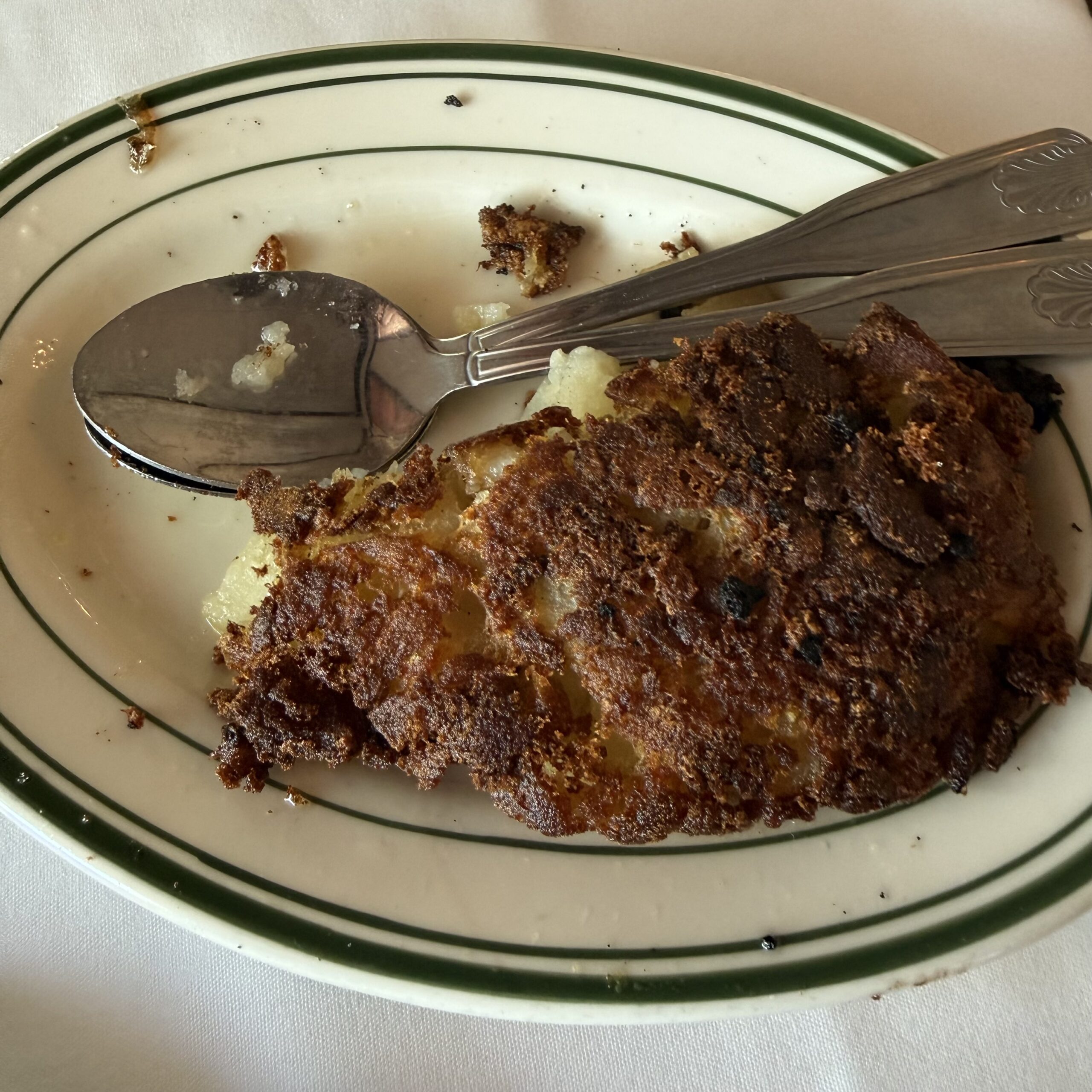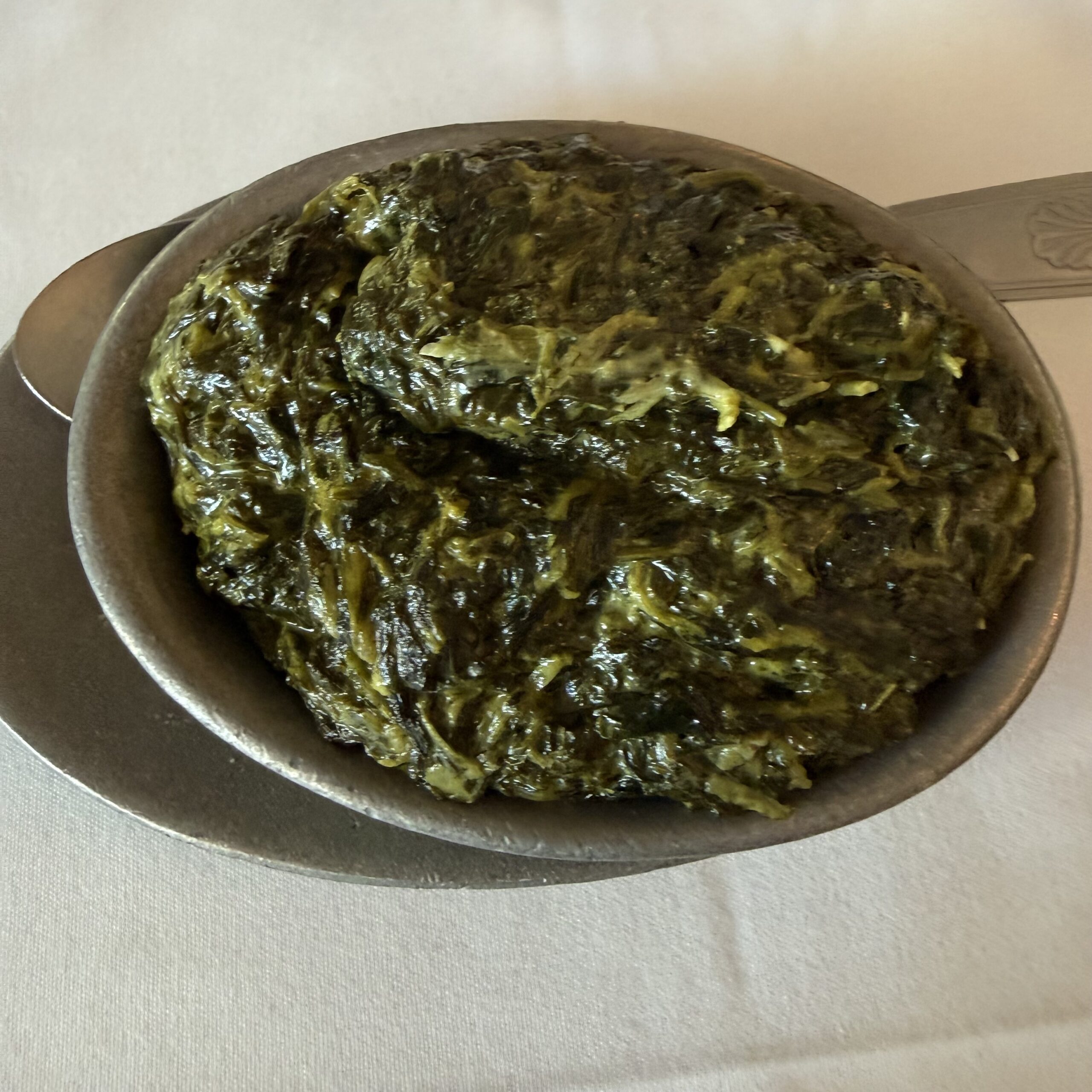 The iconic creamed spinach, mercifully prepared without garlic, allowing the cream and spinach to actually taste like themselves is simultaneously presented with the potatoes ($13.95).