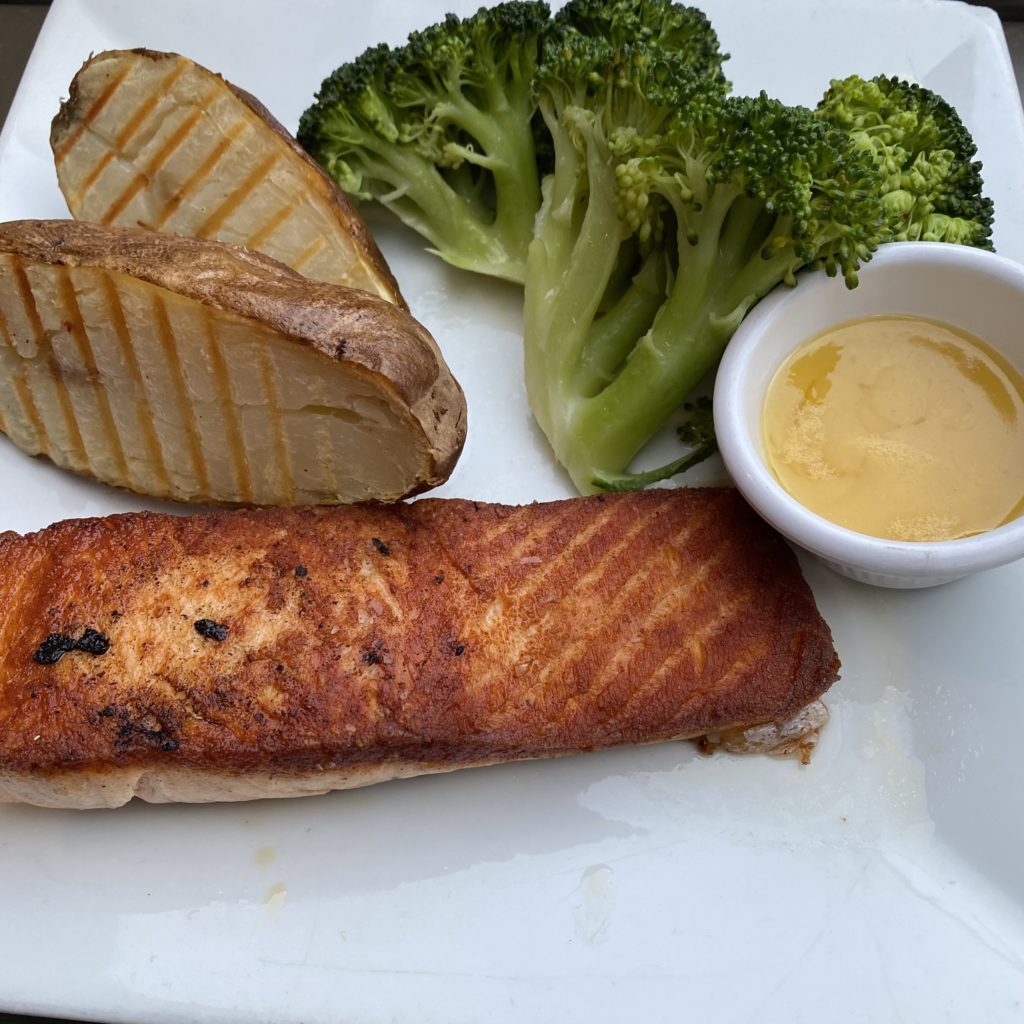 I ordered a simple grilled Wild Scottish Salmon with a delicious orange beurre blanc sauce which was perfectly prepared accompanied by a grilled baked potato and broccoli served al dente ($30).
