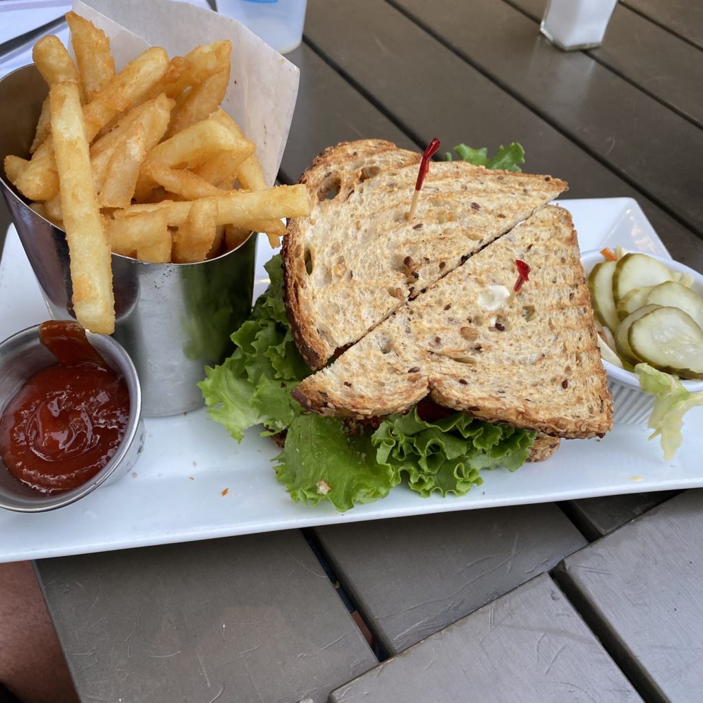 My husband selected the Yellow Fin Tuna Club with ginger wasabi mayo and bacon. The piece of fish was substantial and the fries fabulous ($21).