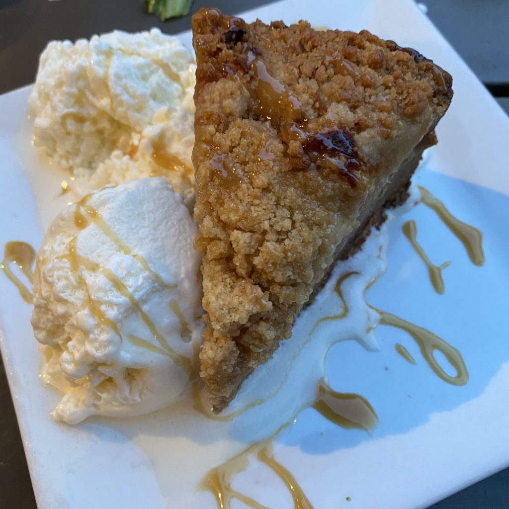 Dessert was a slice of Apple Caramel Crumb Cake with vanilla ice cream which isn’t my thing, but the bite was tasty ($9).