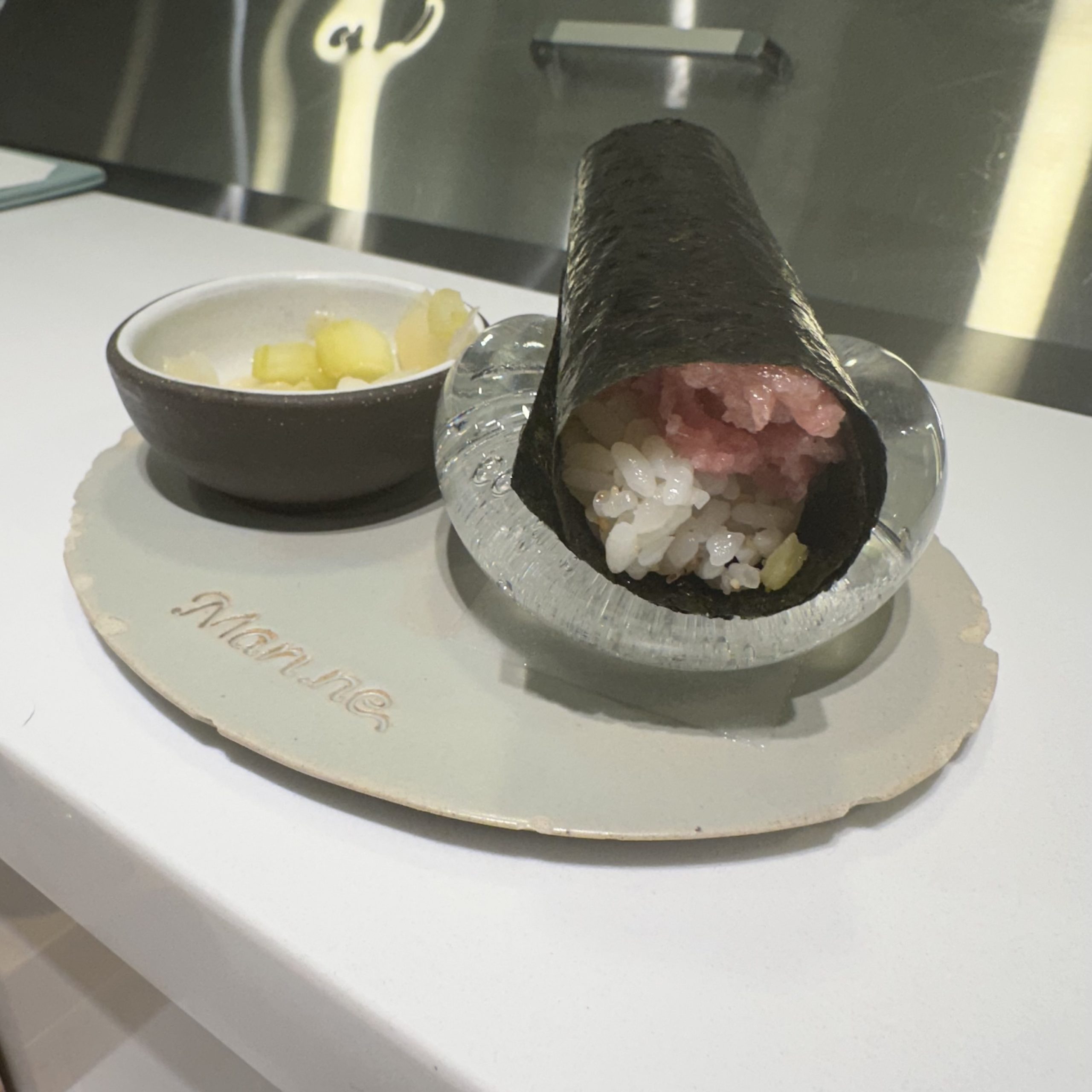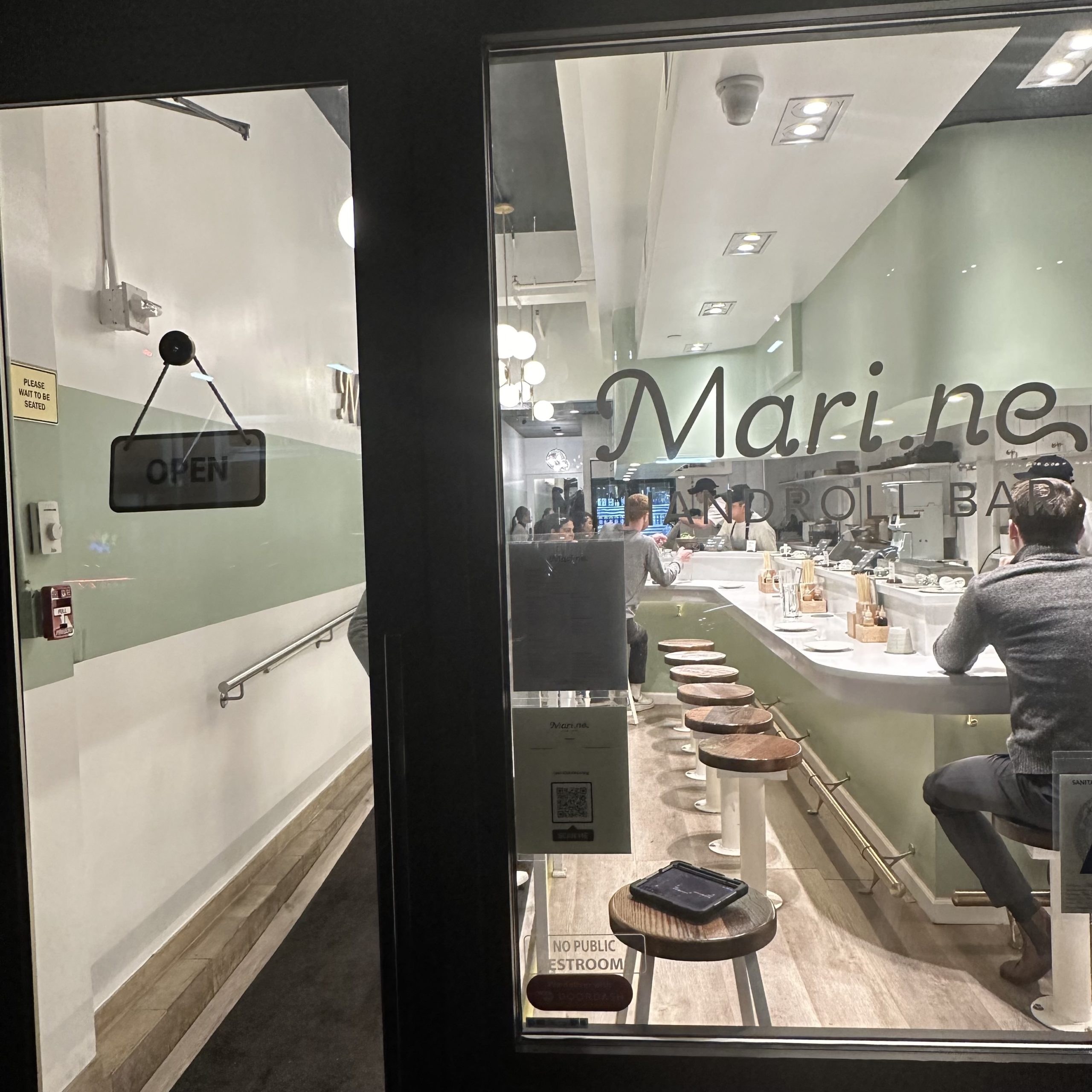Mari.ne is a 15-seat, intimate, bright white sushi bar offering high quality handrolls at great prices.