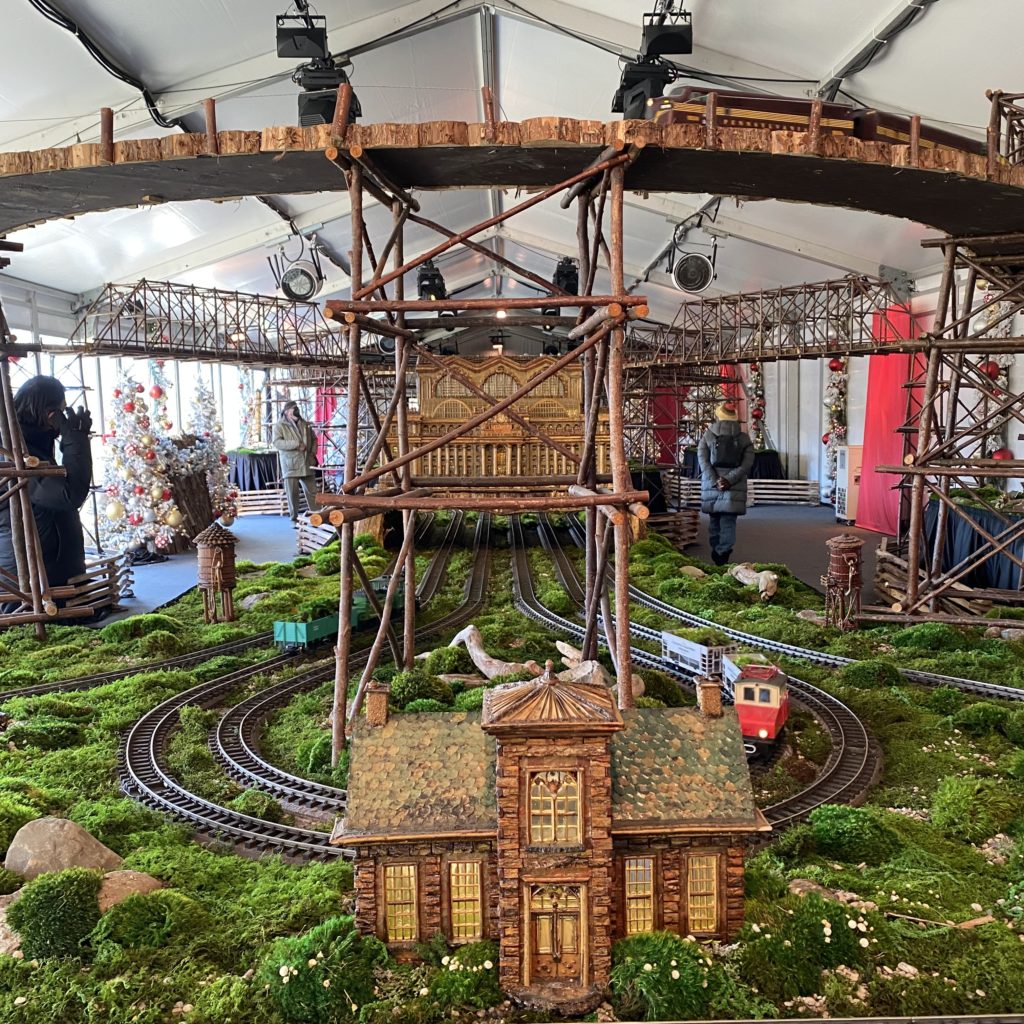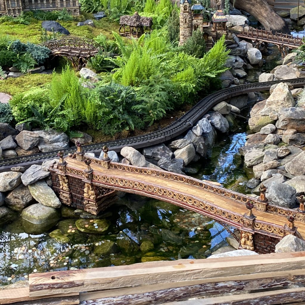 On Sunday morning at 9am when even the plants were awaiting their wake up watering, we marveled at model trains zipping through an enchanting display of more than 175 famous New York landmarks, including the Statue of Liberty, Brooklyn Bridge, Rockefeller Center, each delightfully re-created from natural materials such as pine cones, acorns and seeds.