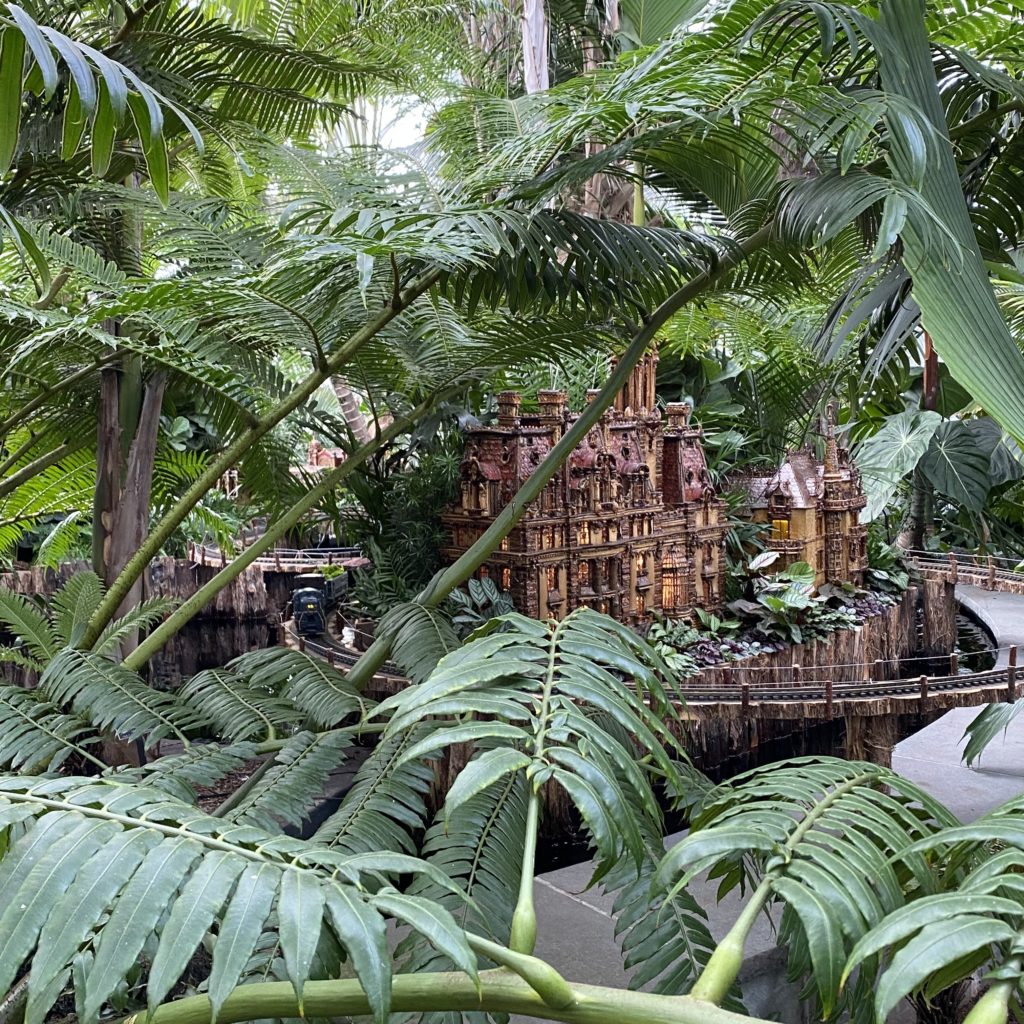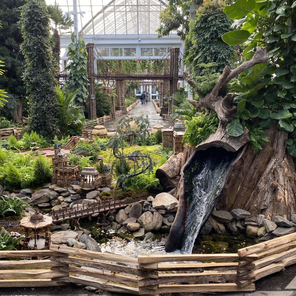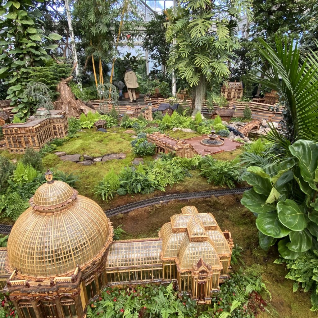 The miniature wonderland is located inside amongst the natural beauty of the Enid A. Haupt Conservatory.