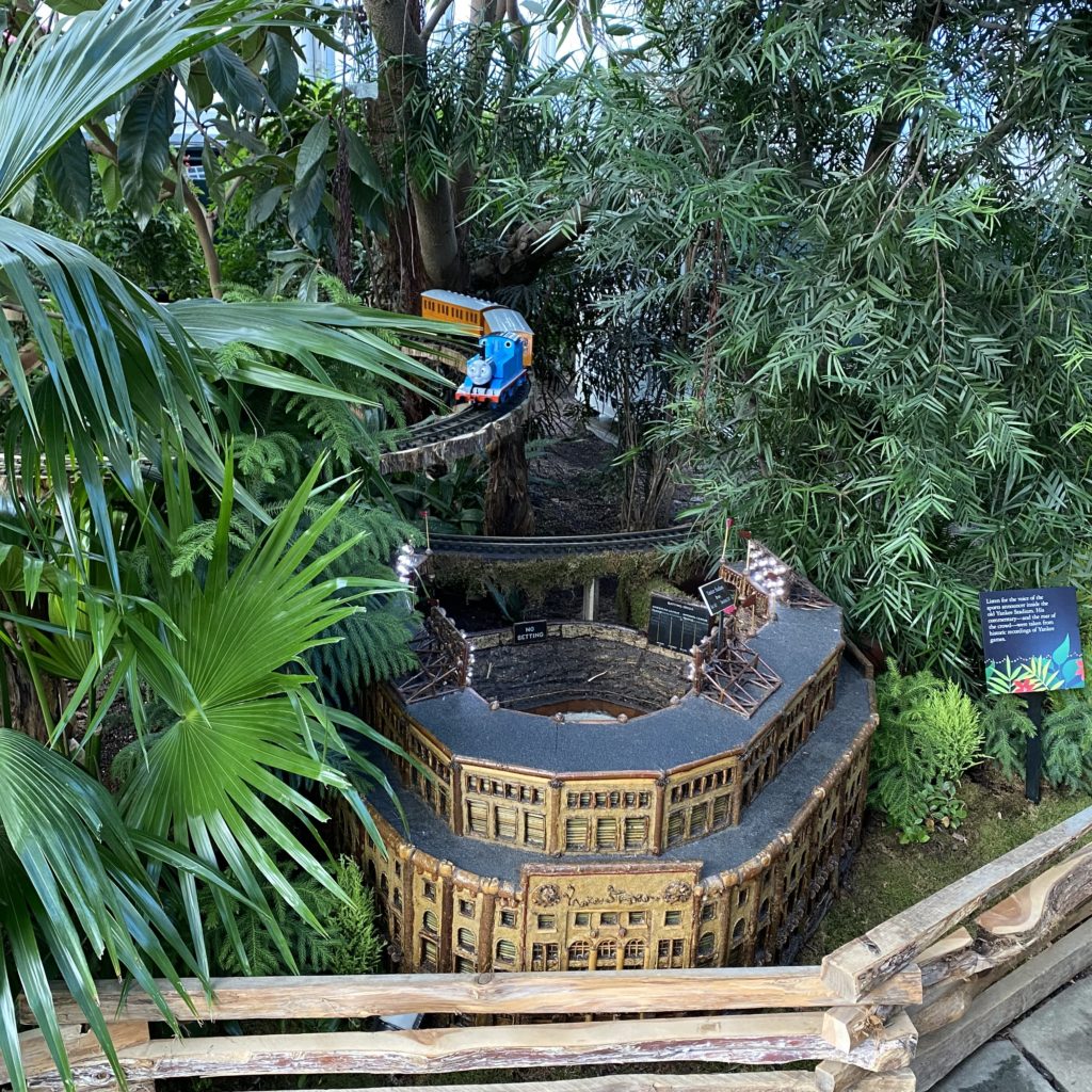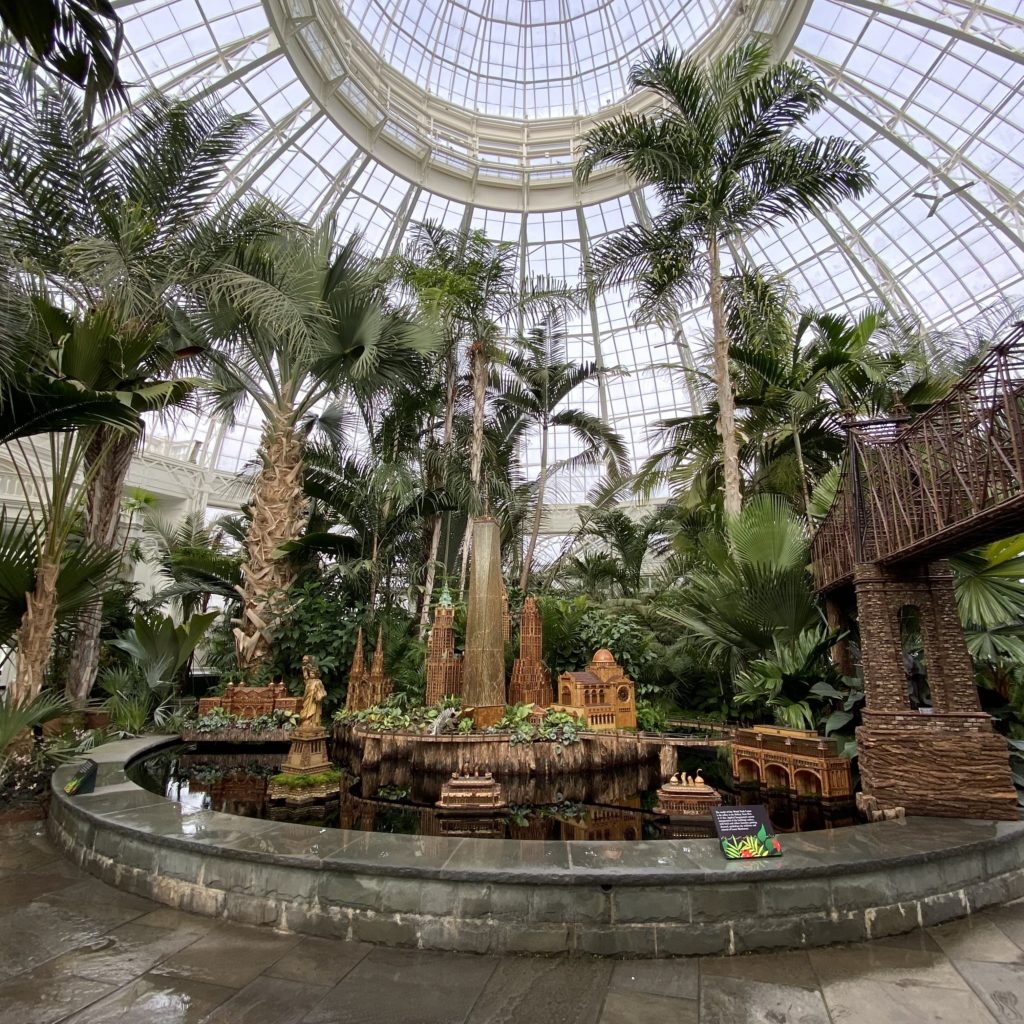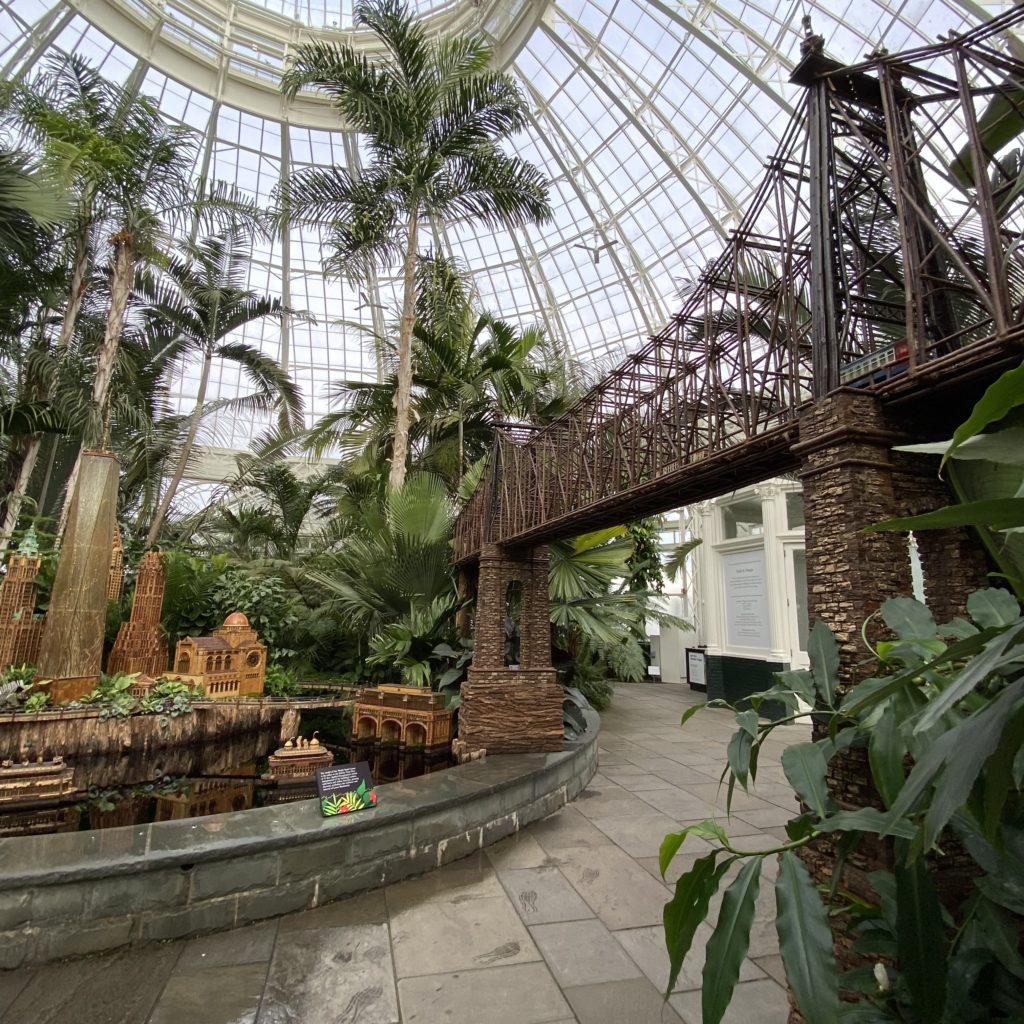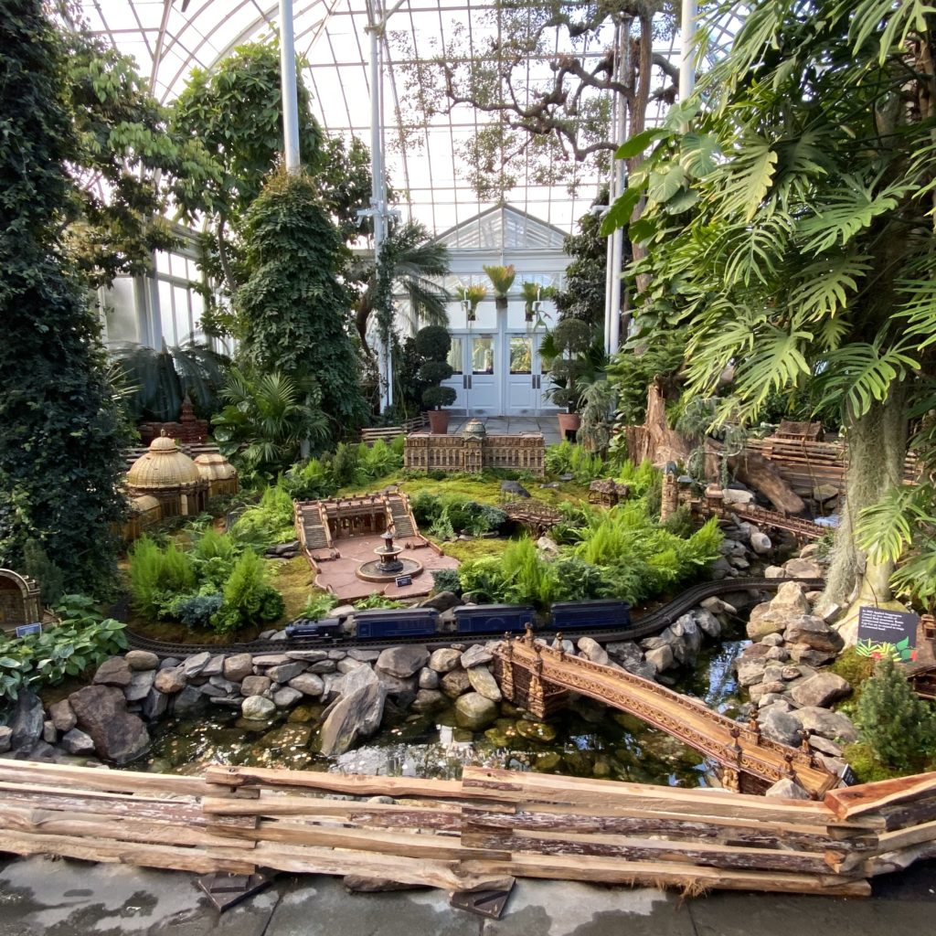The miniature wonderland is located inside amongst the natural beauty of the Enid A. Haupt Conservatory.