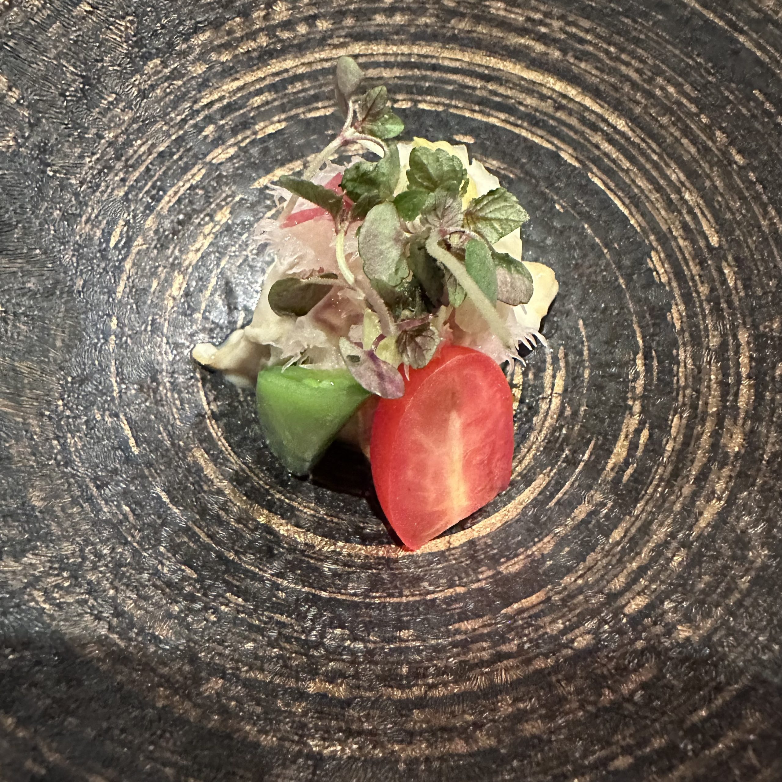 Enjoy several of the Omakase courses, including Oysters marinaded in Yuzu and white miso, Bonito in ponzu sauce, Buckwheat noodles and crab, Sea bass,