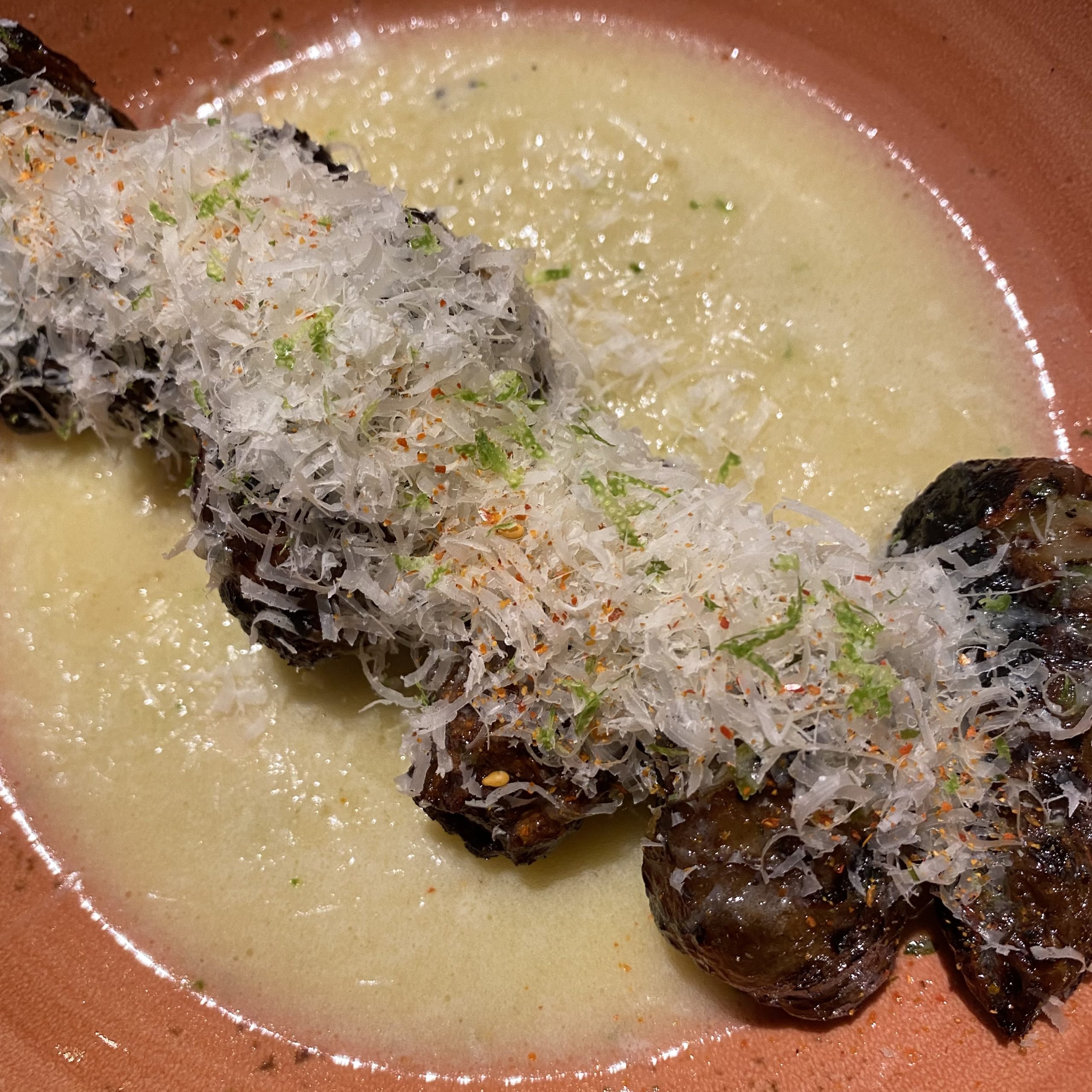 The Charred Suncokes were outrageous, bathed in a pool of Parmesan cream with togarashi lime ($19).