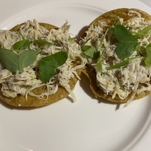 The Crab Tostada was a huge disappointment. A small scoop of tasteless crabmeat on a very hard corn tortilla was a waste. I left it to languish on the plate ($16).