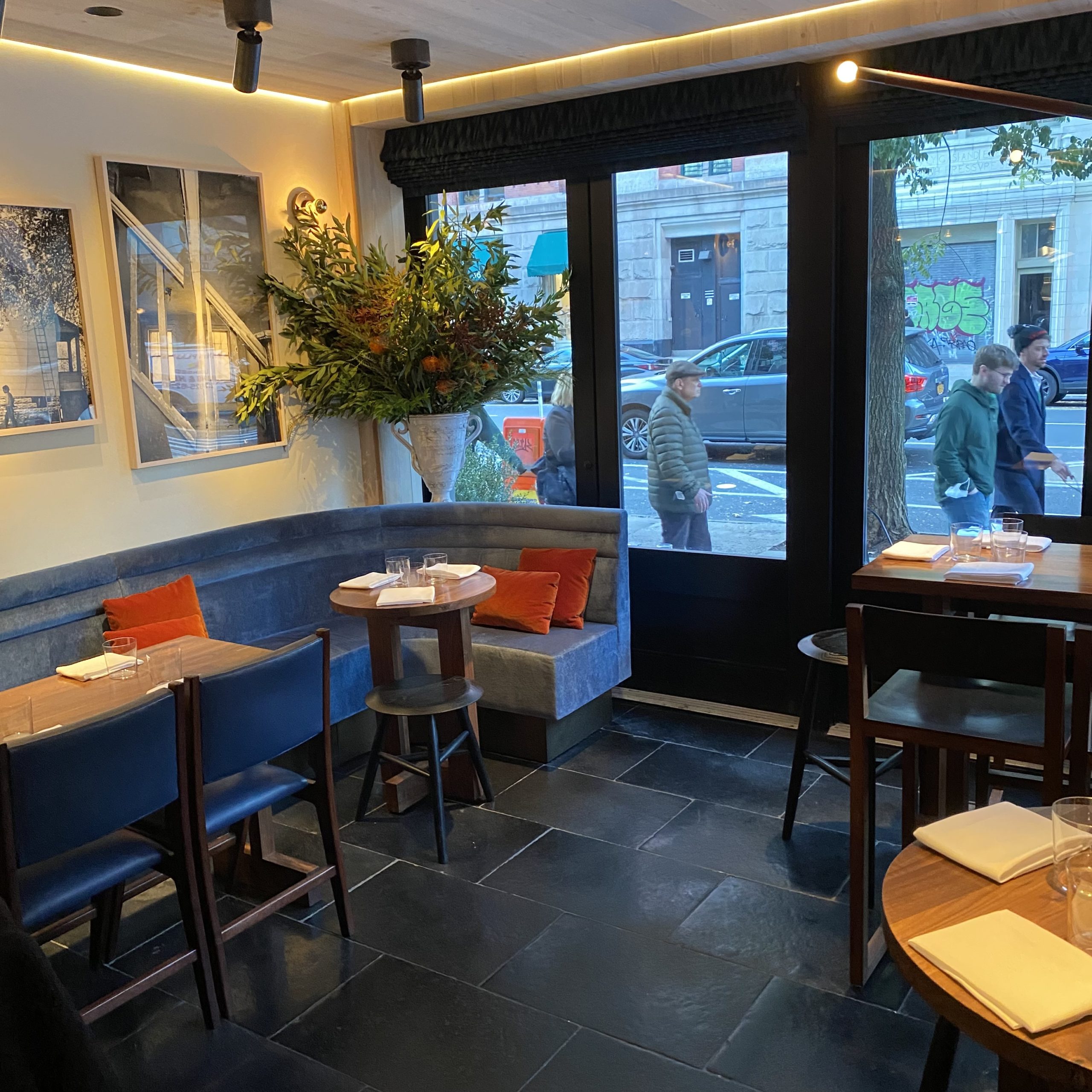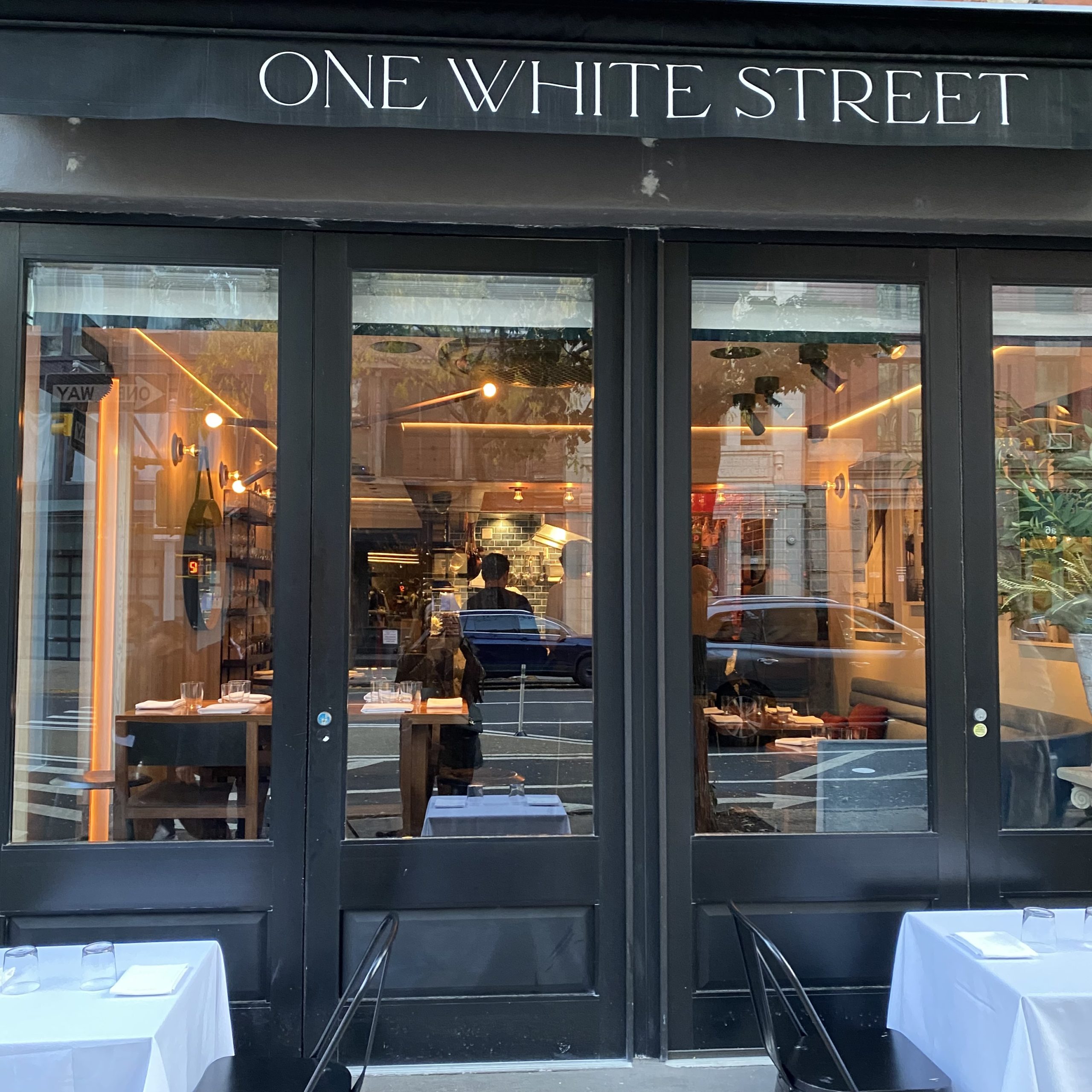 One White Street 1 White Street Tribeca NYC. Open Tuesday-Thursday 5-10pm and Friday-Saturday 5-11pm. Reservations for the upstairs dining tasting menu on Resy.