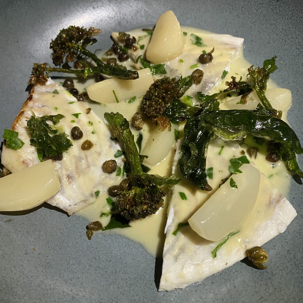 We selected the Roasted Turbot in a delicious lemon beurre blanc sauces which was quite good, but arrived cold.