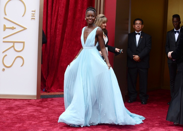Lupita Nyong’o arrives at the Oscars on Sunday, March 2, 2014, at the Dolby Theatre in Los Angeles. (Photo by Jordan Strauss/Invision/AP)