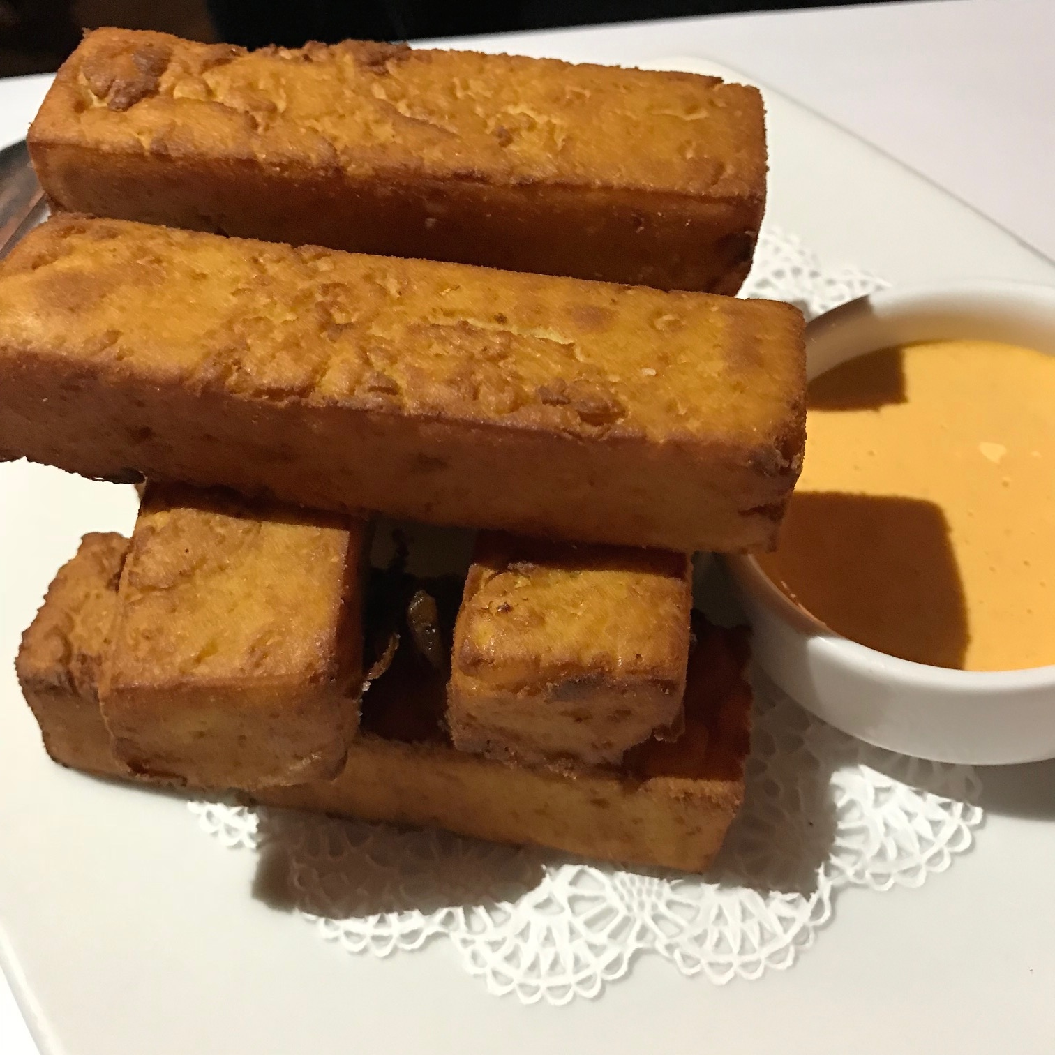 I did not want him to drop on my watch so I told him to forget it and I ate the side of Chickpea Fries which were very good, but not my idea of a main course unless I am hormonal ($9).