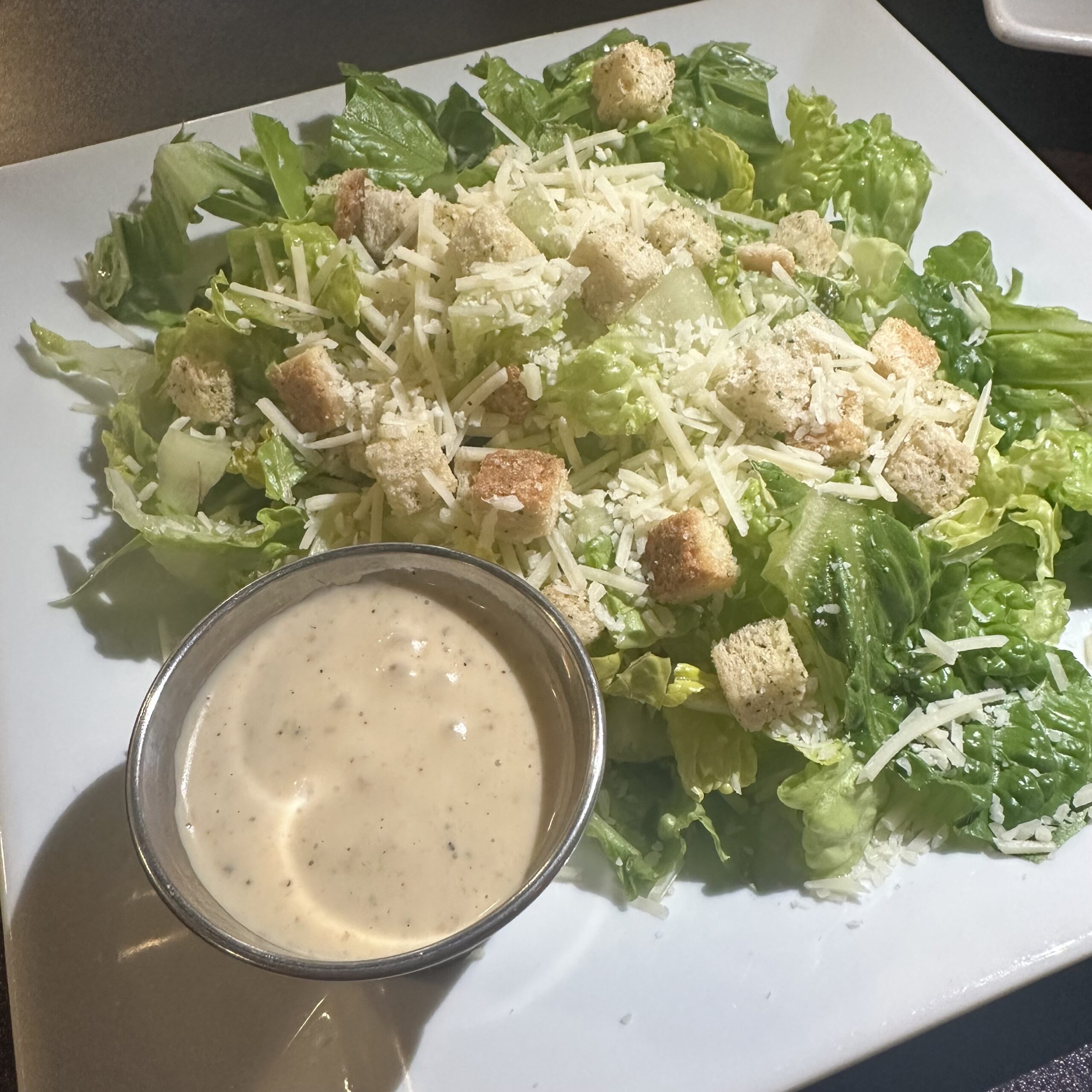 The Caesar Salad arrived looking like Publix had catered. It was bagged romaine with pre-shredded Parmesan, bottled dressing and processed croutons…inedible ($7).