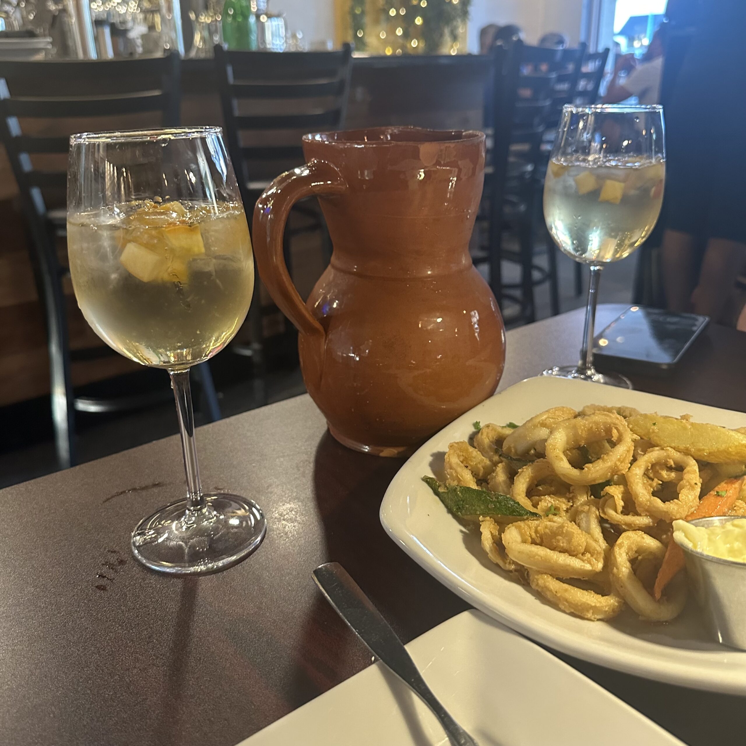 We started with Sangria. It was dreadful and absent of fruit, a mainstay of sangria. A few sad, lonely apple chunks floated in the urine colored mixture (full carafe $38).