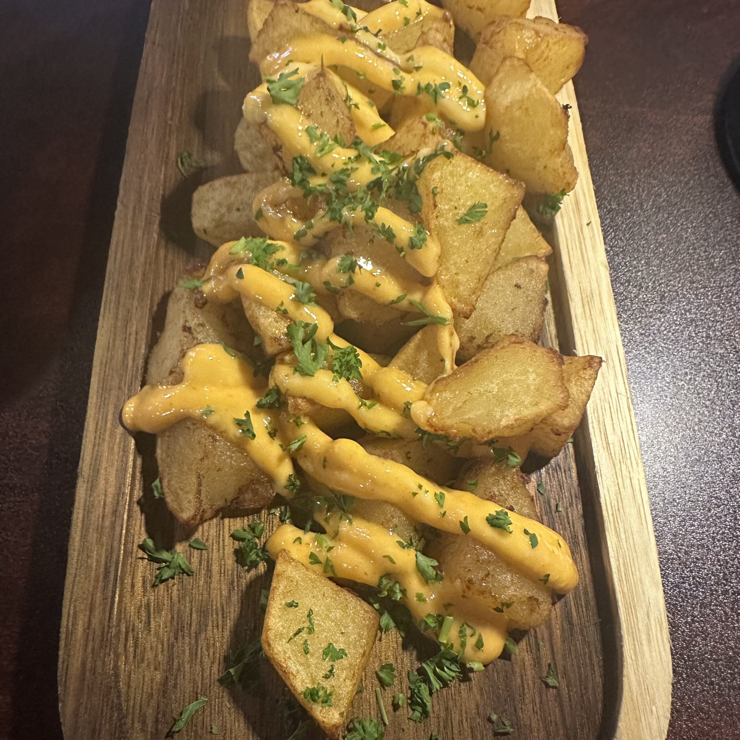 The Papas Bravas Potatoes came bathed in a spicy red pepper garlic aioli. Hideous ($8).
