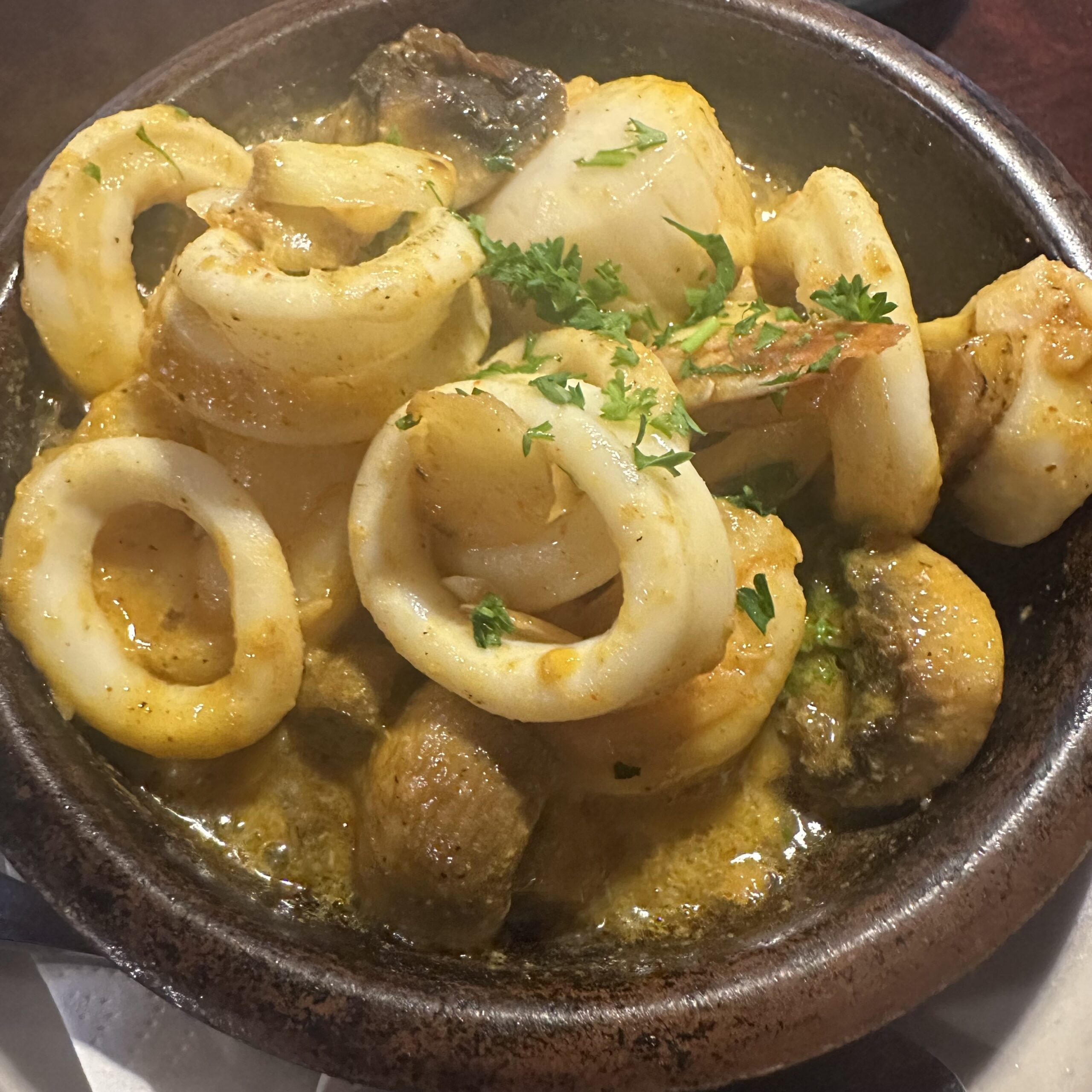 The seafood Cazuelita was awful. The sauce tasted like old fish with shrimp, scallops, calamari, mushrooms and chorizo sautéed with garlic, olive oil and white wine ($20).