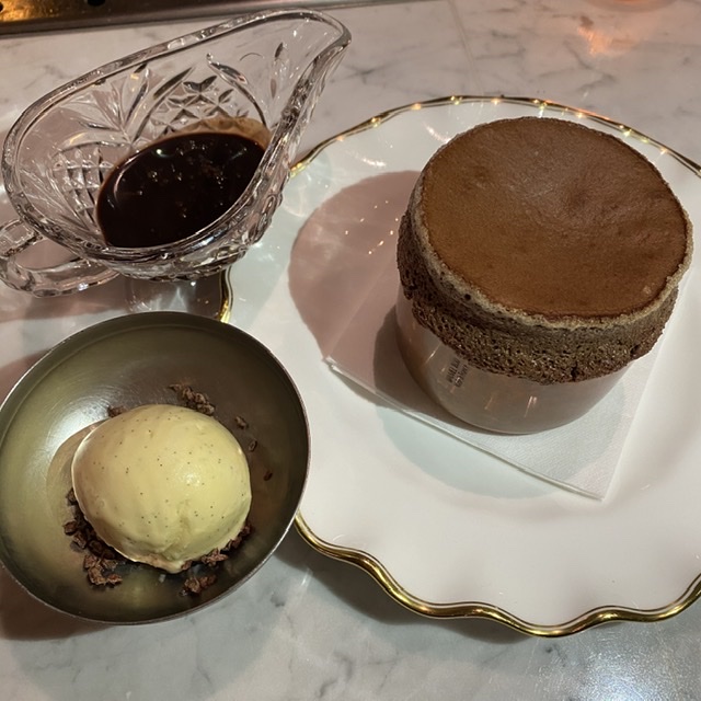 We ended up choosing the light and delectable Soufflé Au Chocolat with vanilla bean ice cream and chocolate sauce.