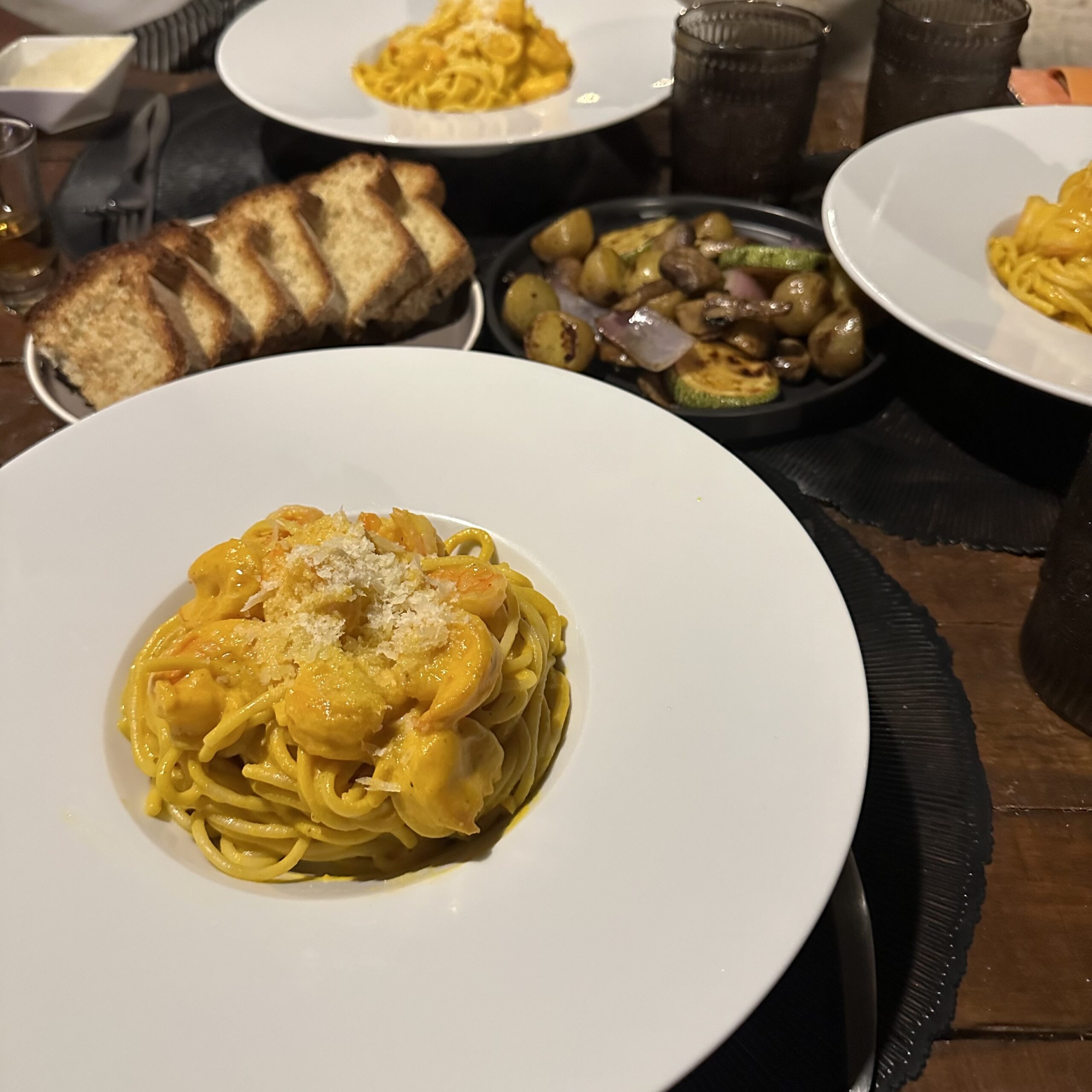Easy to accommodate we all requested fresh Linguine Pasta with Shrimp in a simple cream sauce with a seafood broth base. It was amazing.