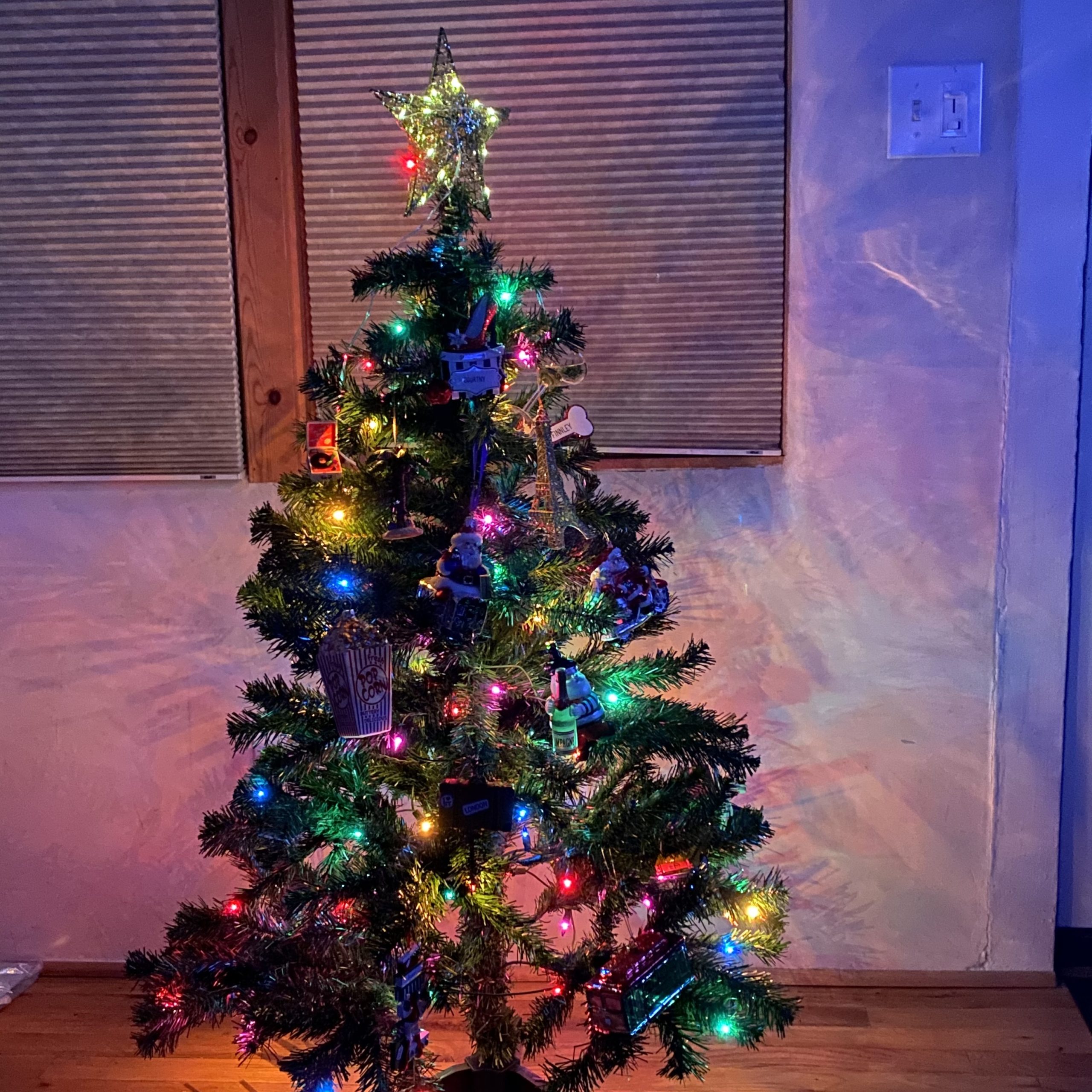 I gaze upon my charming, illuminated tree that fills the darkened house with a magical holiday glow.