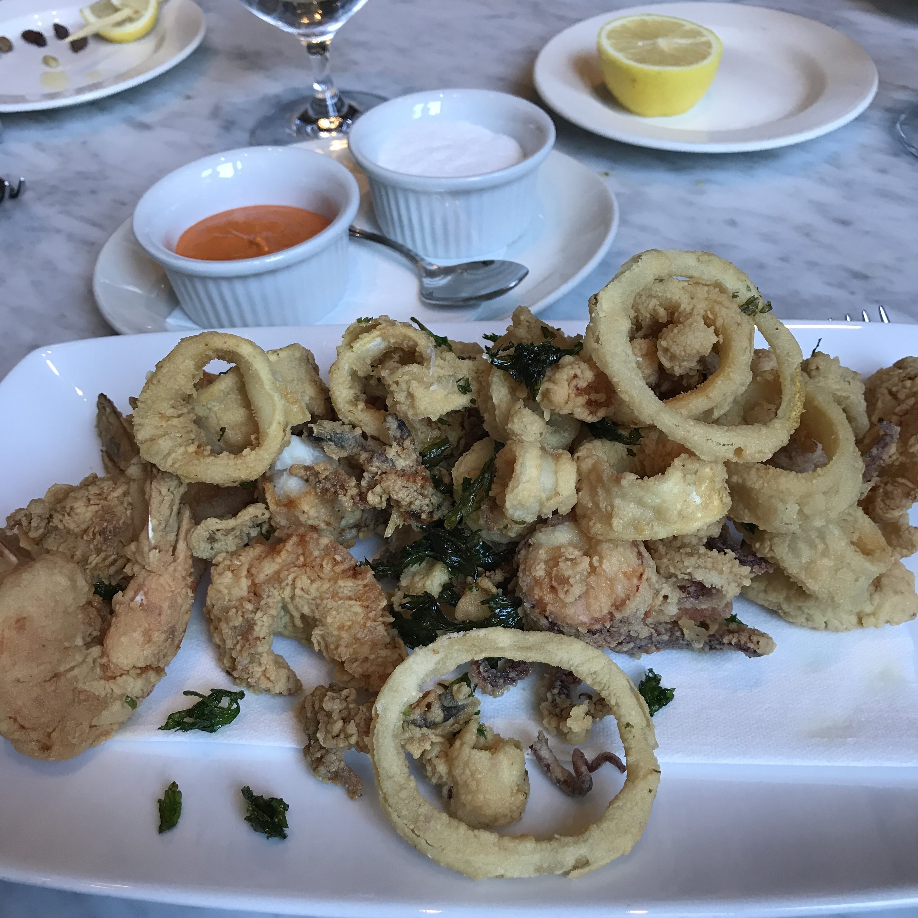 Enjoyed a midday repast with my 2 favorite people, husband, David and daughter, Courtny, and indulged in one of the best Fritto Misto di mare ever.