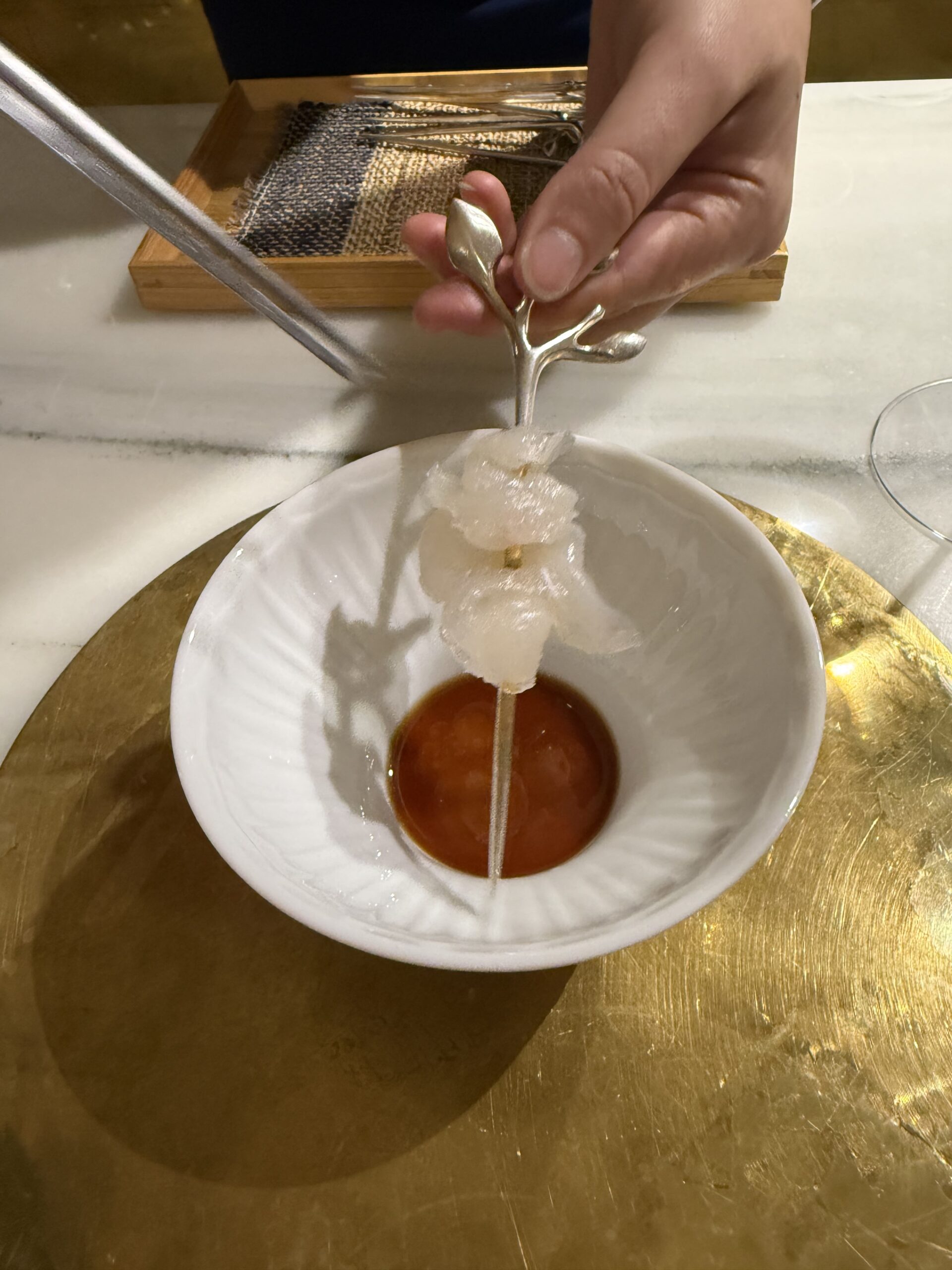 With just eight counter seats, this owner-chef–driven space delivers a deeply personal, fixed-price ($135), multi-course gastronomic experience where everything is cooked and assembled directly in front of you as if you are dining in a friend’s kitchen.