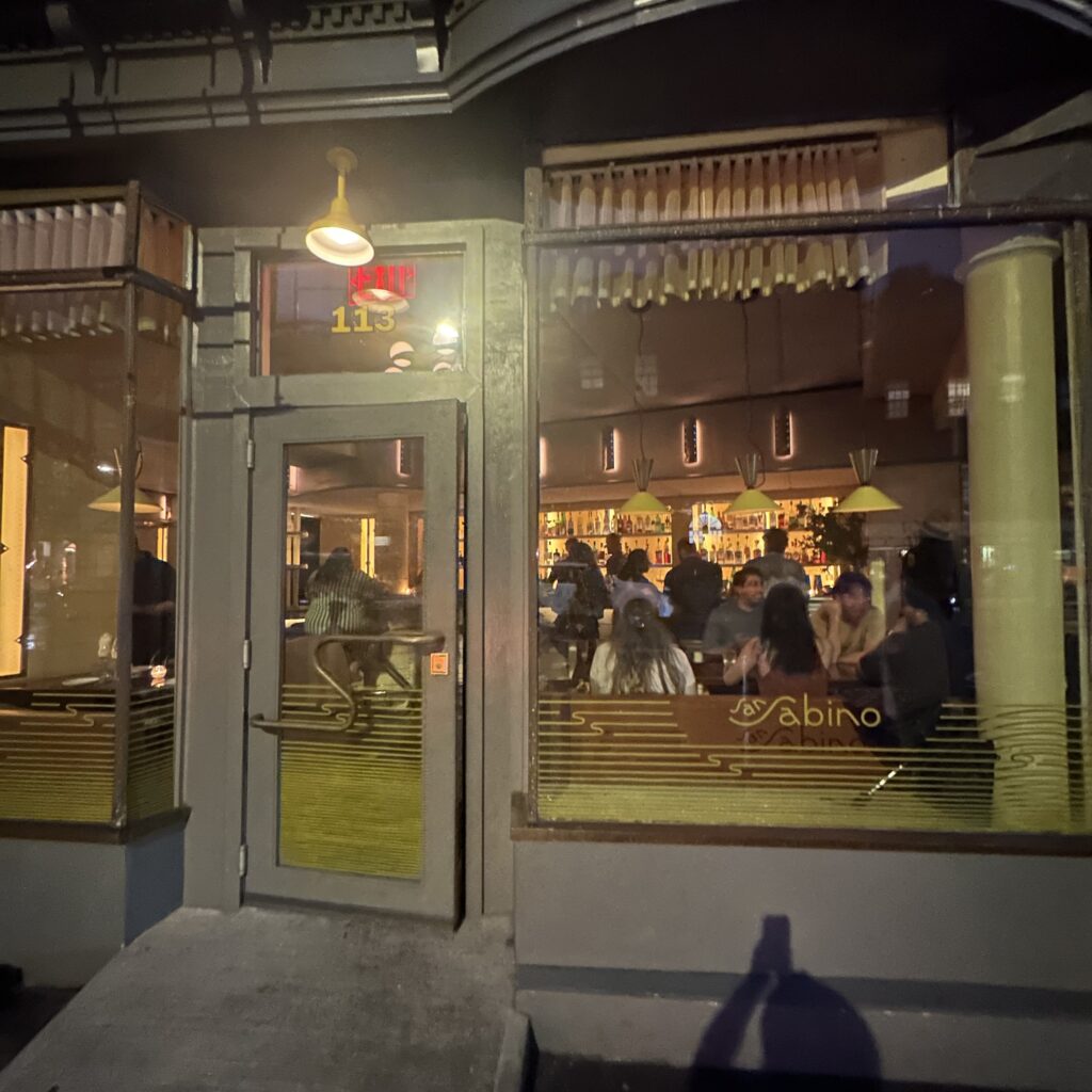 San Sabino 113 Greenwich West Village, New York City. Open daily. Bar opens at 4:30pm and the restaurant is open from 5-10pm. Reservations on Resy.
