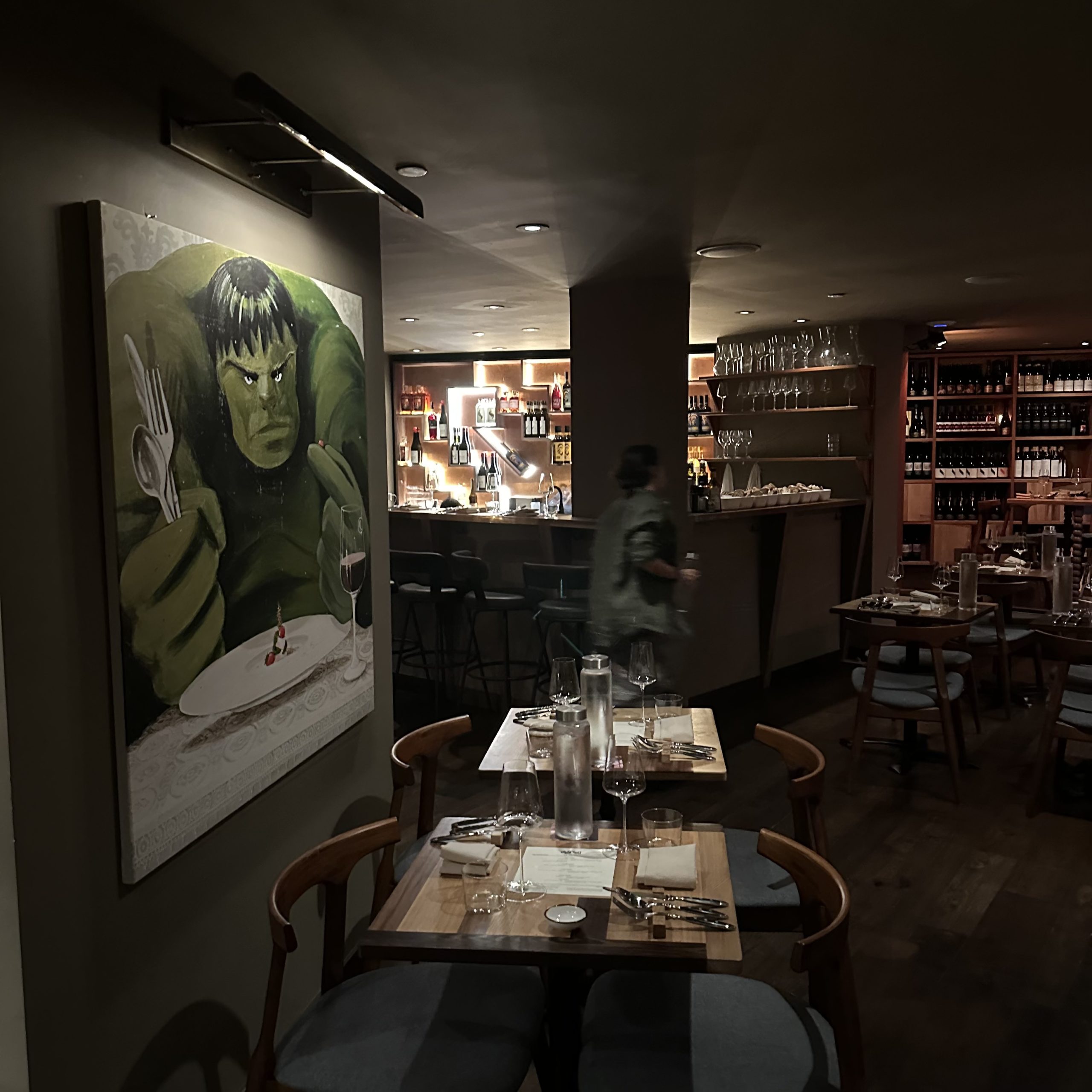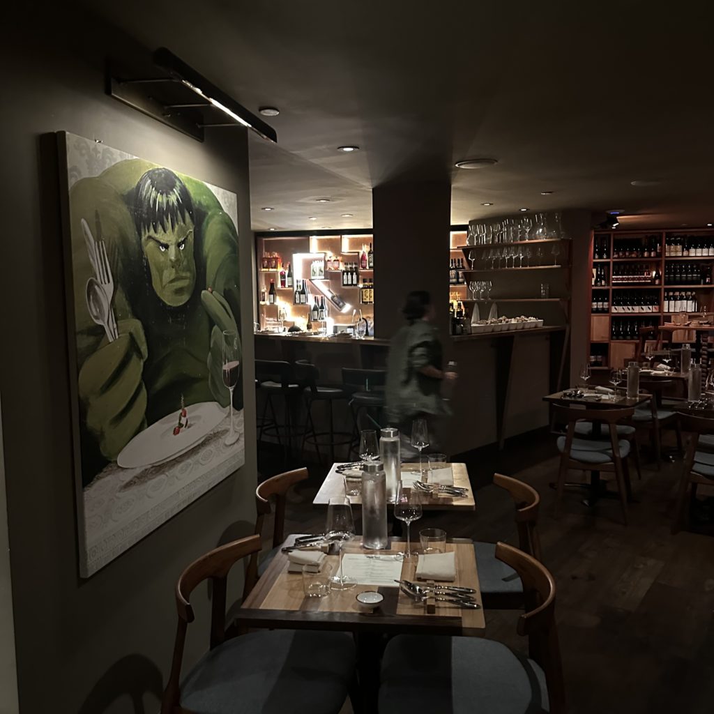 The room was warm and the most uncomfortable tables and banquettes. The wine lounge looked more pleasing.