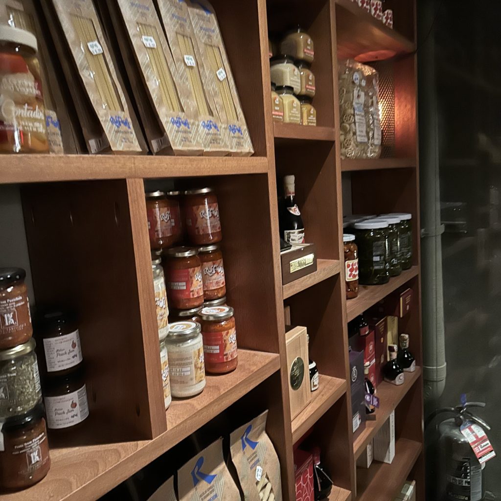 Roscioli prides itself on stocking preserved vegetables, olive oils, cheeses, condiments and cured meats from small producers. The New York outpost carries both imported and local products, pared down from the hundreds of choices in Rome.