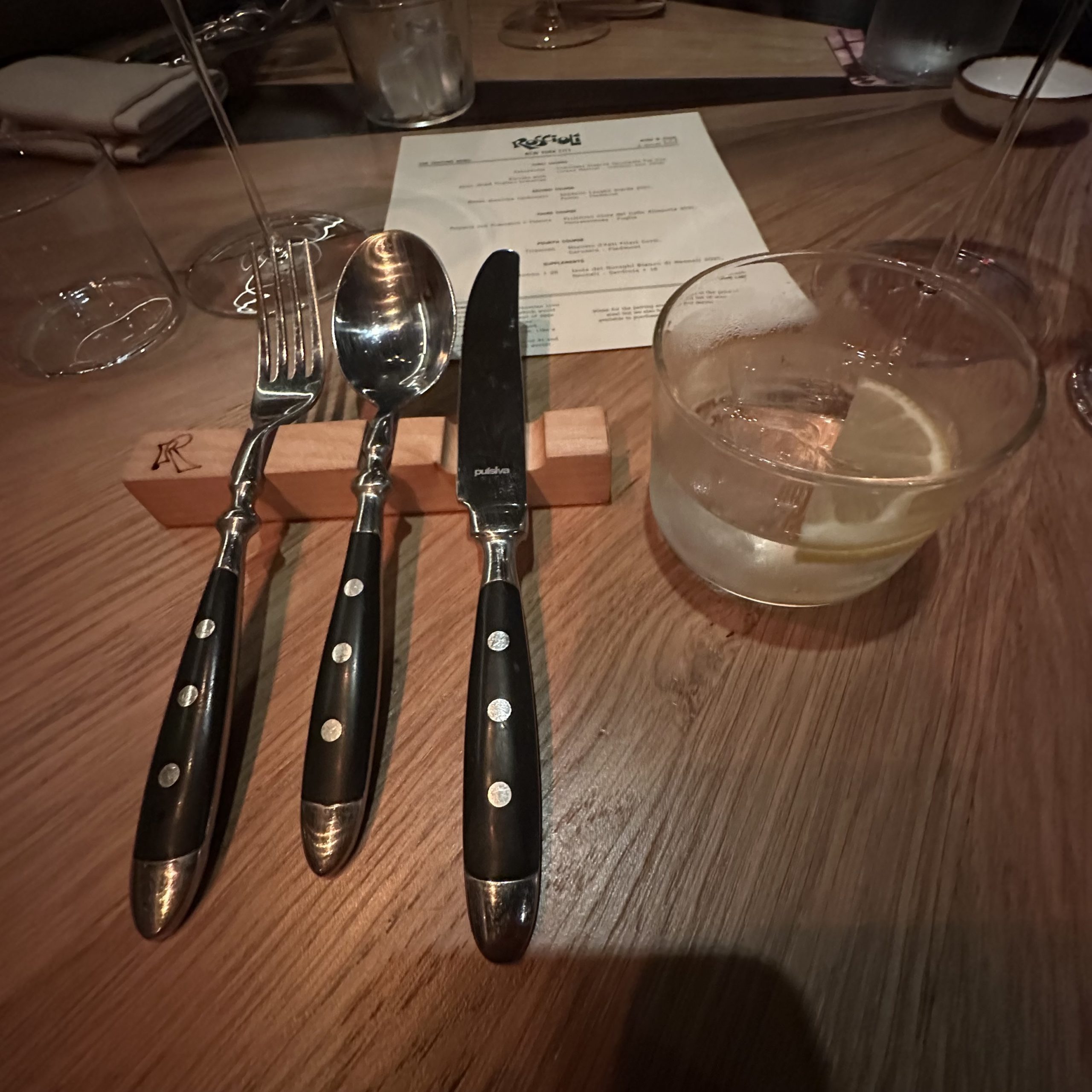 Once ensconced in the dimly lite, intimate space the meal kicked off with a lovely Vermouth and soda cocktail.