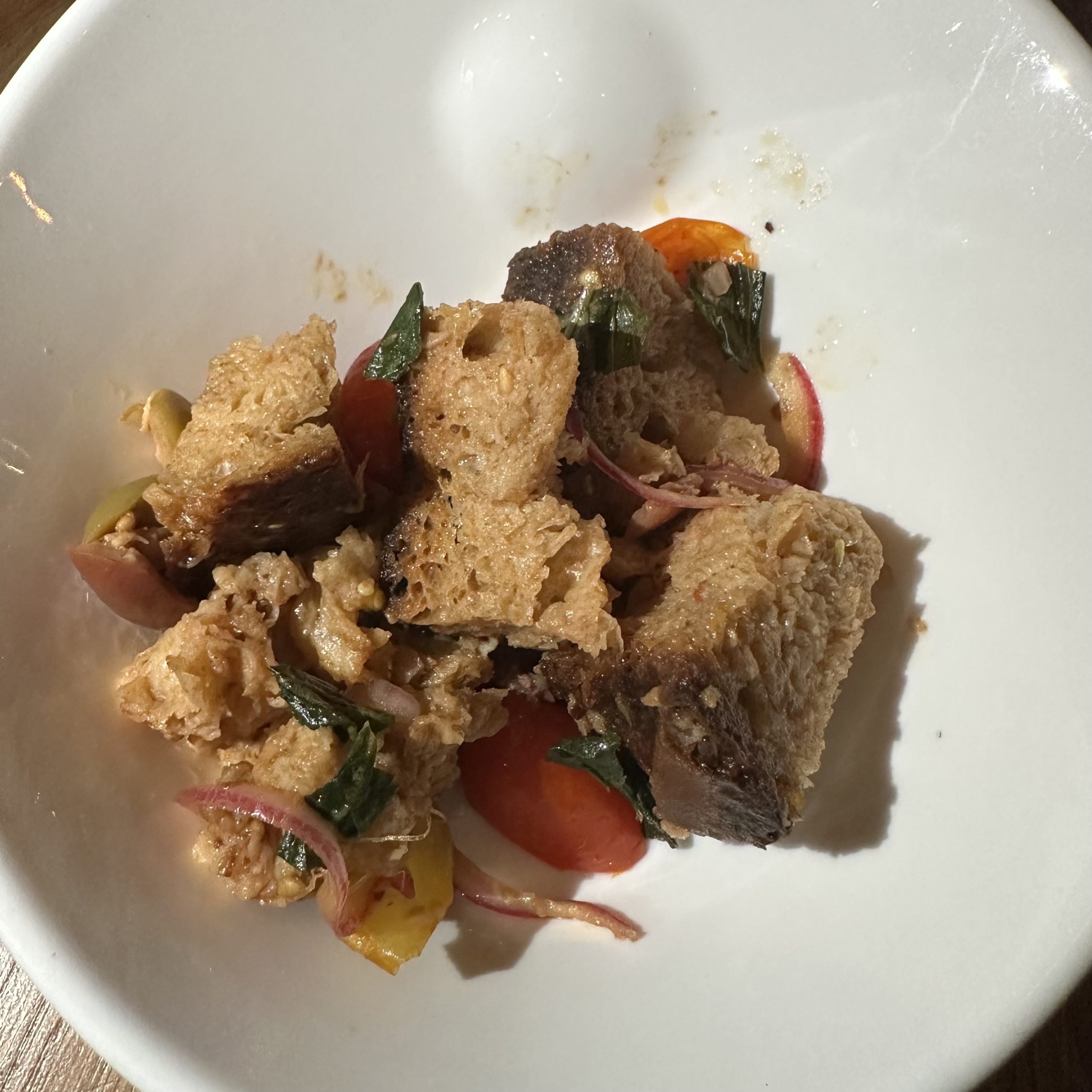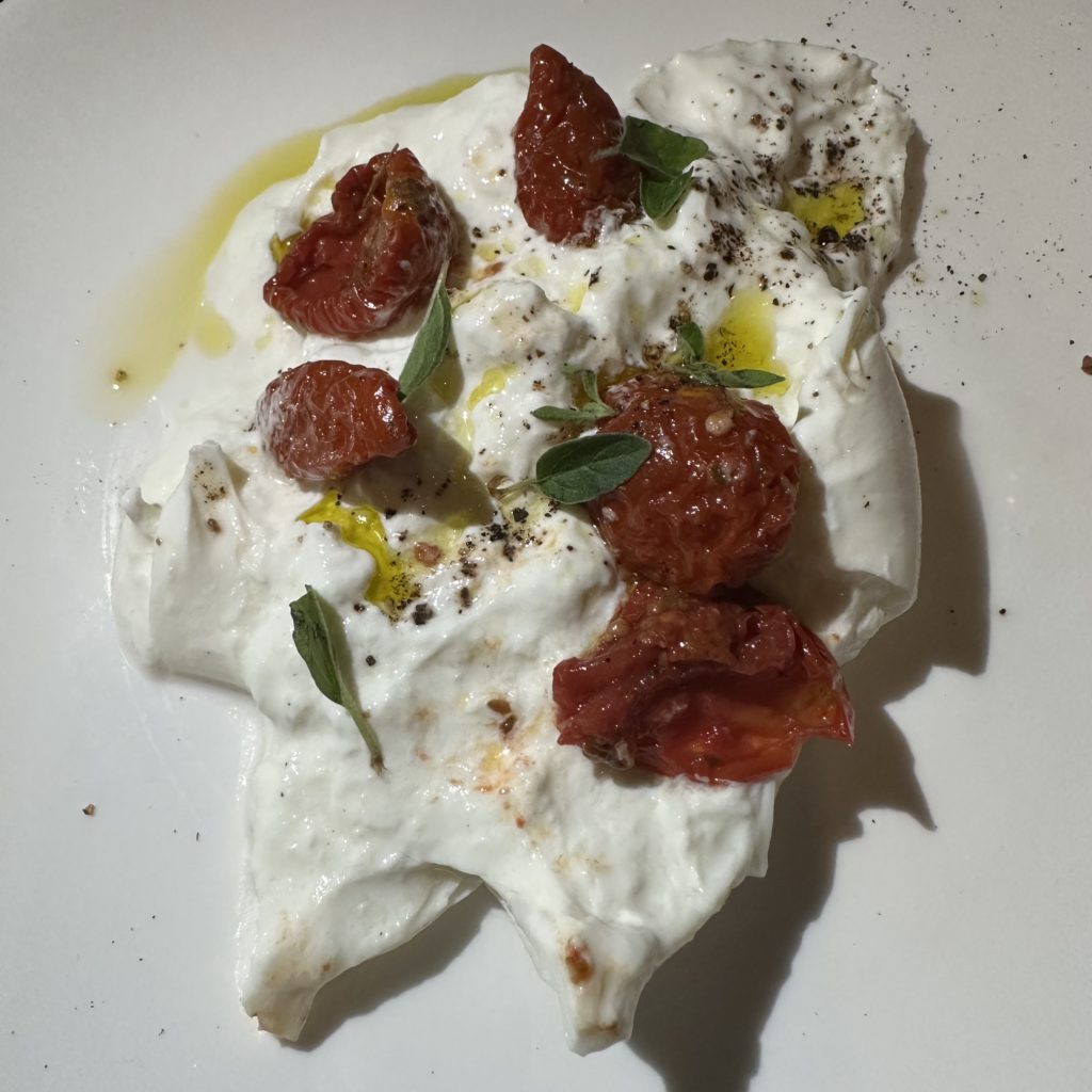 The first course featured a delicious smooth and creamy Burrata with semi-dried Puglian tomatoes and Panzanella (bread salad). The bread was not fabulous.