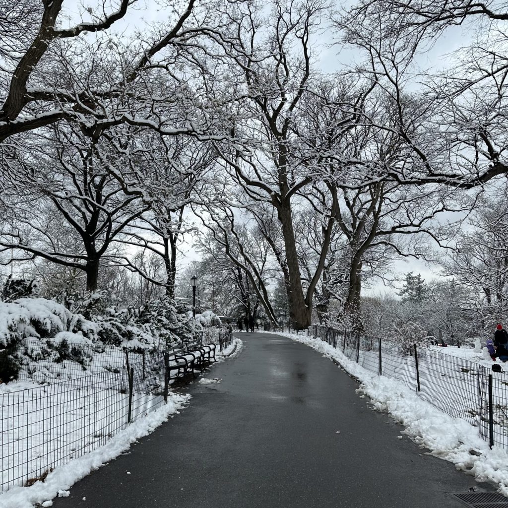 It had snowed overnight and the city was beautifully draped in a light coating of snow.