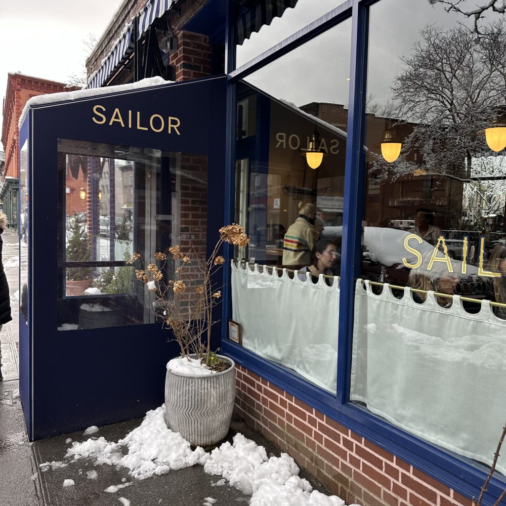 Sailor 228 Dekalb Avenue Brooklyn, New York. Open for dinner Sunday and Wednesday 5-10pm, Thursday-Saturday 5-10:30pm. Lunch Wednesday-Friday 12-2pm. Brunch Saturday and Sunday 10am-2pm. Reservations on Resy. Street parking.