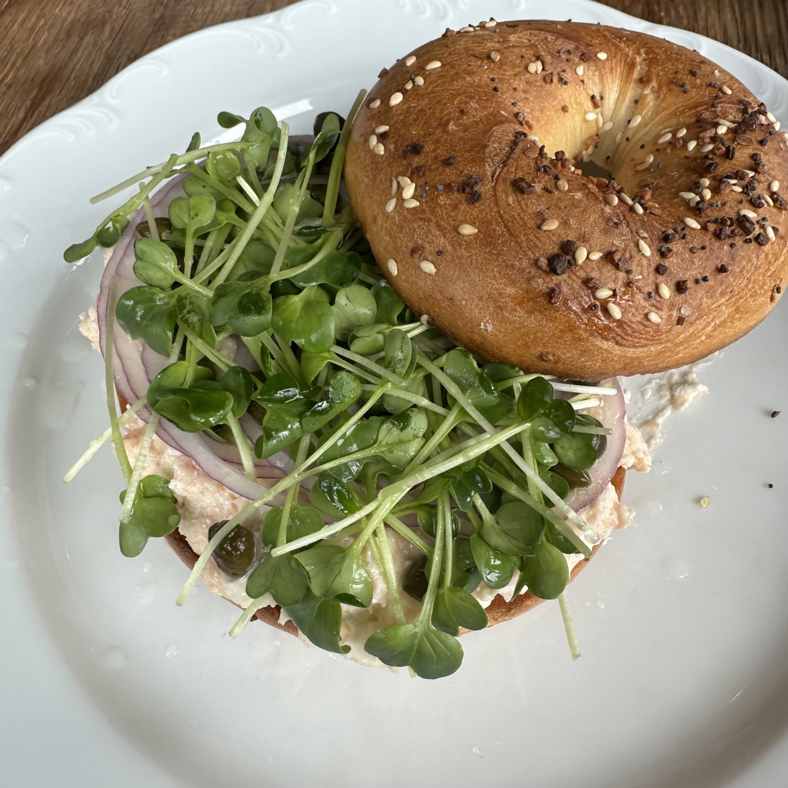 The Toasted Everything Bagel with Salmon Pâté and Radish Sprouts was fabulously flavorful nestled on a delectable crisp bagel ($19).