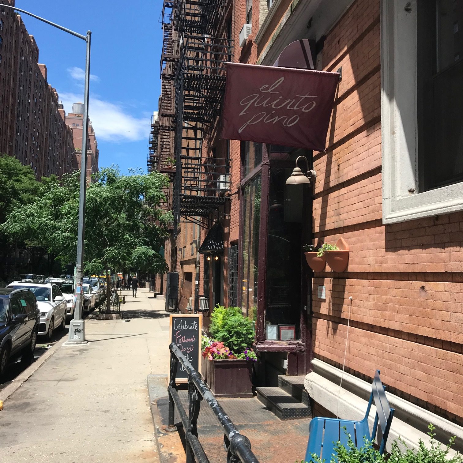El Quinto Pino 401 West 24th Street New York City. Open Monday-Thursday 5:30am-11:30pm, Friday 5:30-Midnight, Saturday 11:30-Midnight, Sunday 11:30-10:30pm. Reservations available on OpenTable.com.