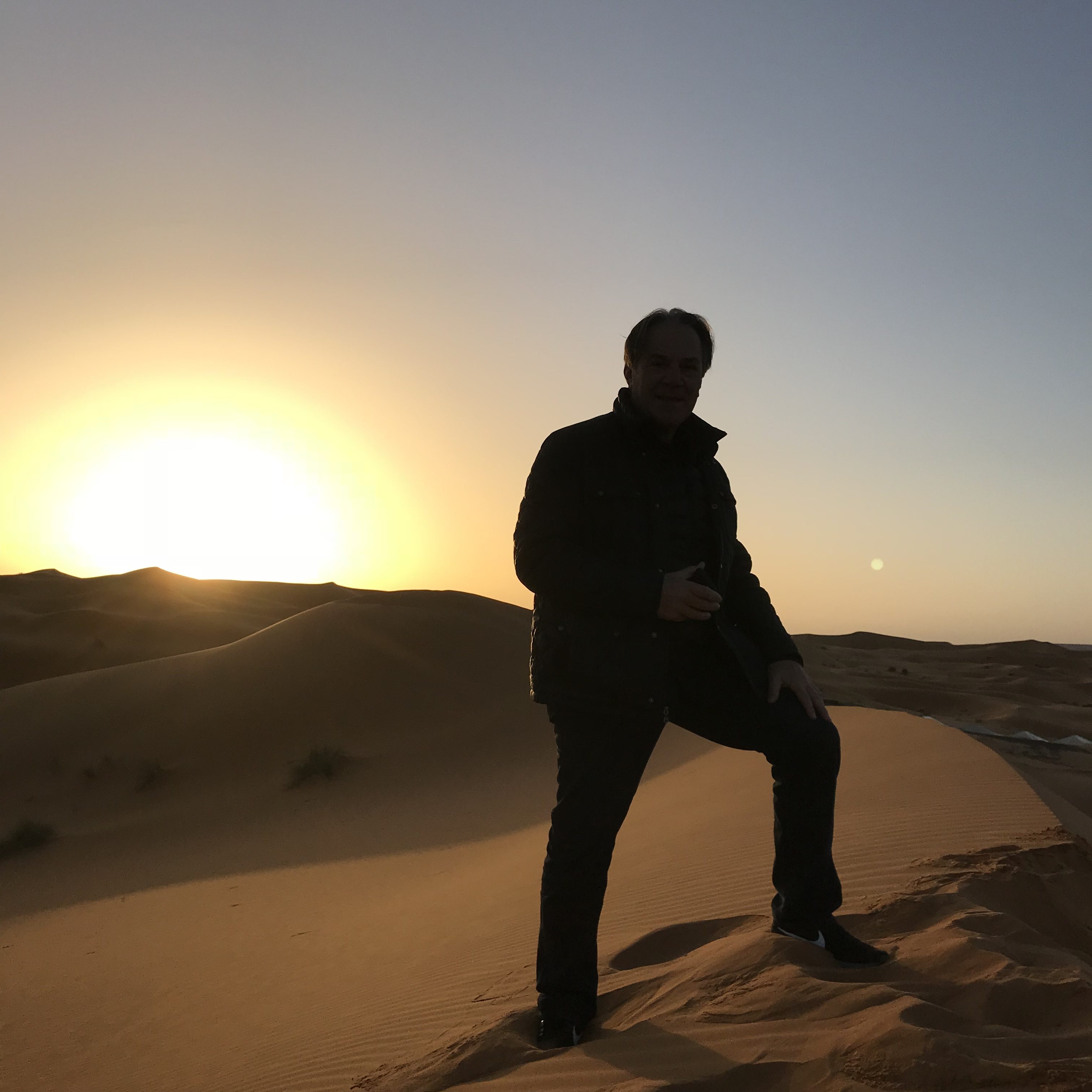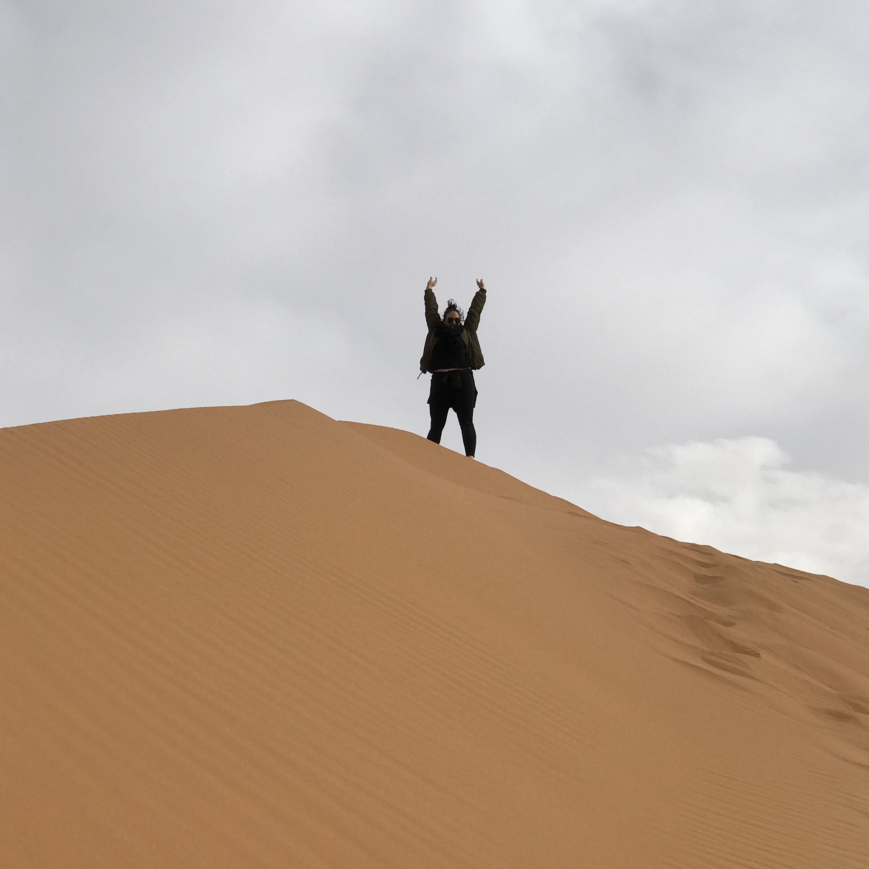 We experienced the awesomeness of sunsets and then braved the cold and wind to greet the golden sunrise after scaling an enormous sand dune.
