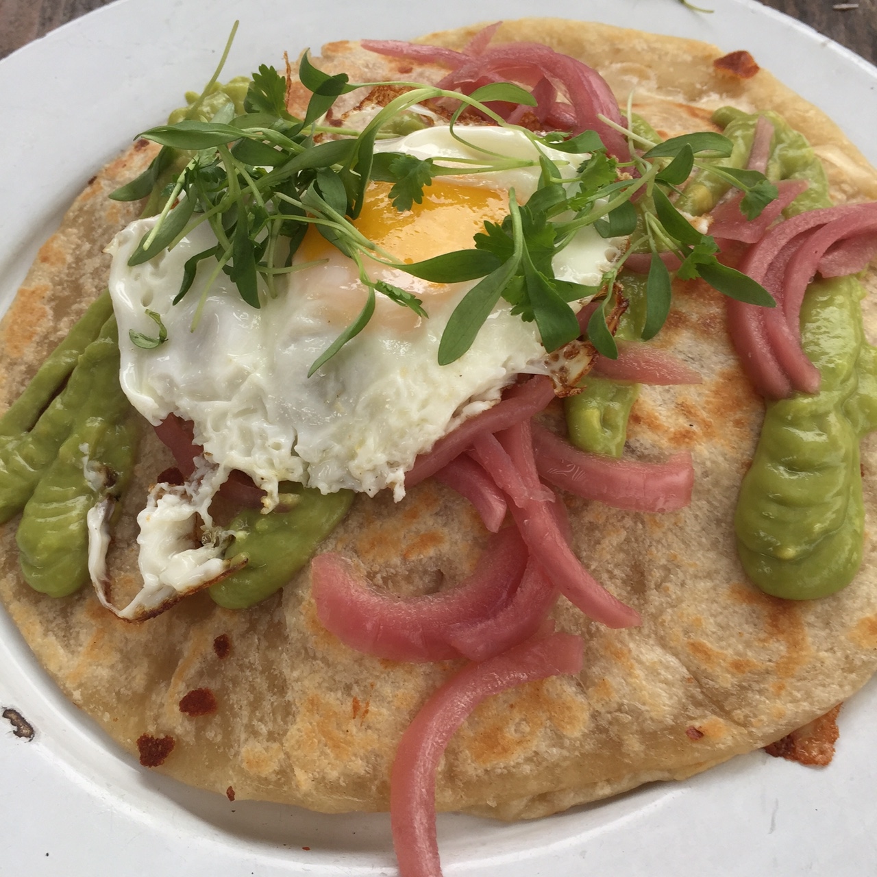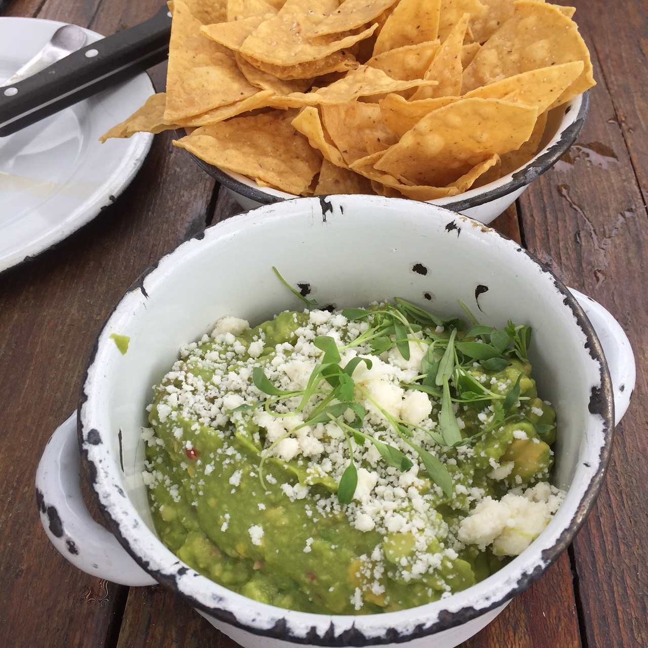 We kicked brunch off with homemade chips and guacamole with red onion, cilantro, sunflower seeds and queso fresco…both very good ($8).