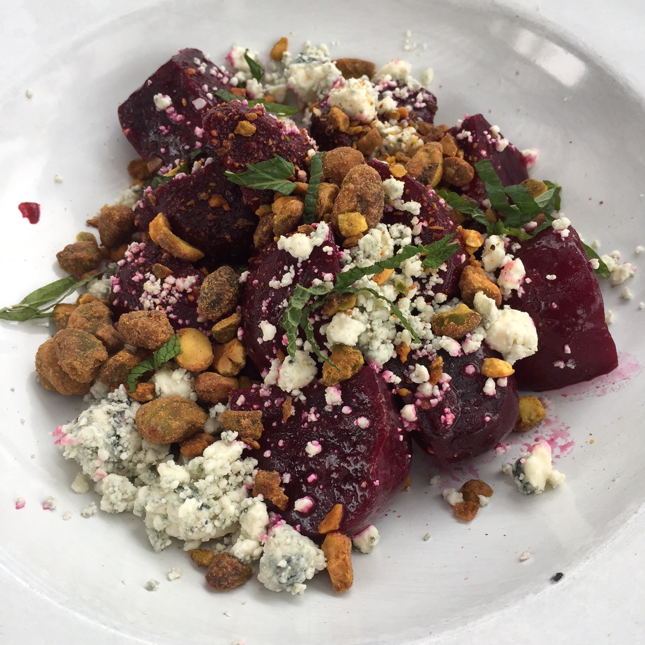 Tierra was our first course, a fantastic roasted beets salad with spicy pistachios, blue cheese, mint and a citronette dressing ($12).