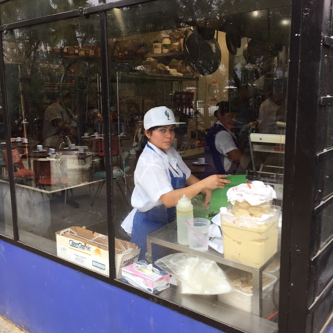 There is a tiny adjacent area where women were working hard, making the homemade tortillas.