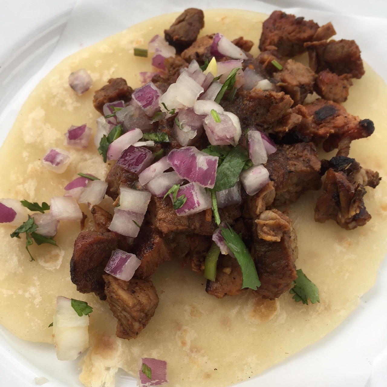 I chose a Carne Asada Taco filled with steak grilled over blazing hot mesquite, salsa vaquera, cilantro and red onion, all ingredients perched on top of a homemade flour tortilla ($3.75). The steak was tender and juicy, the onions sweet.