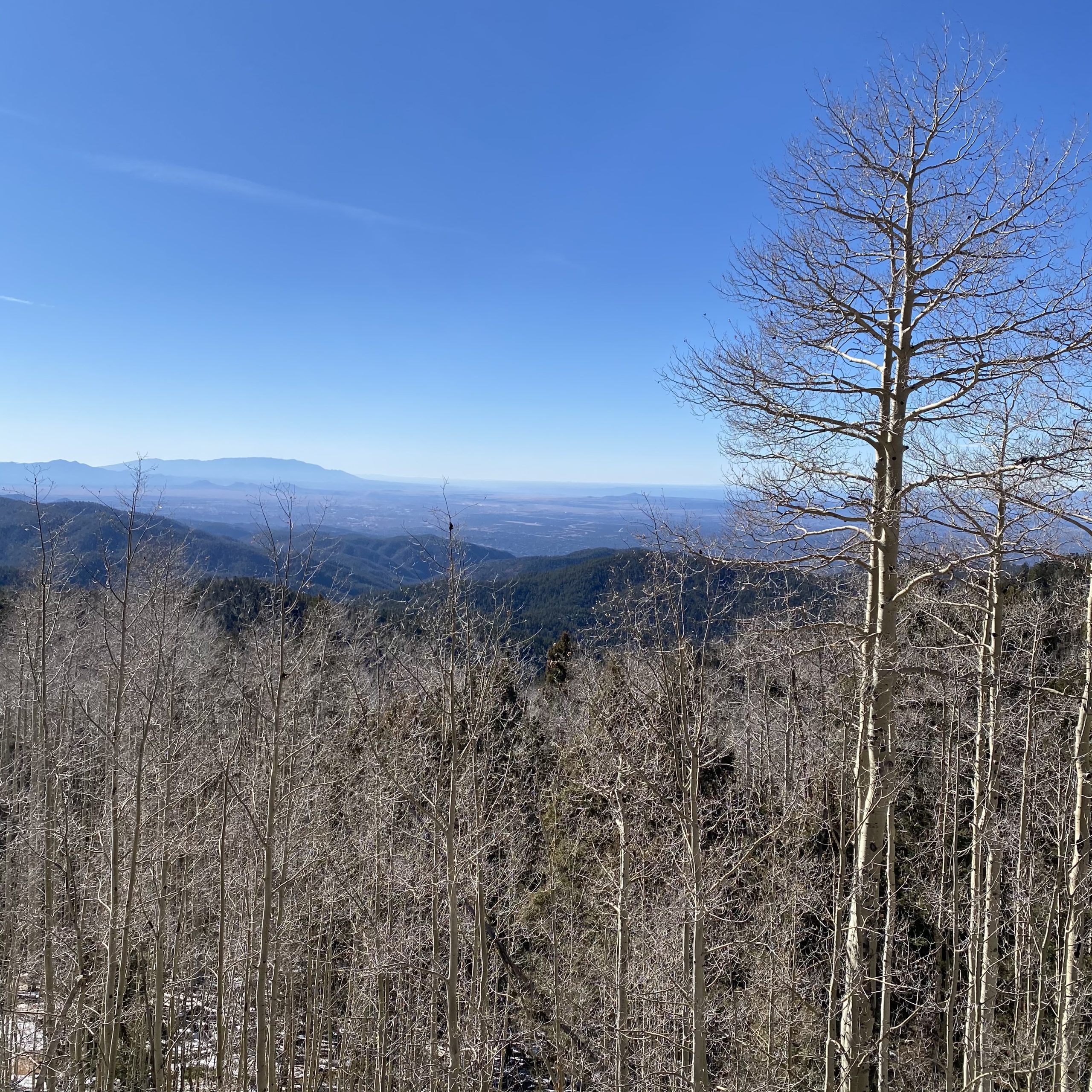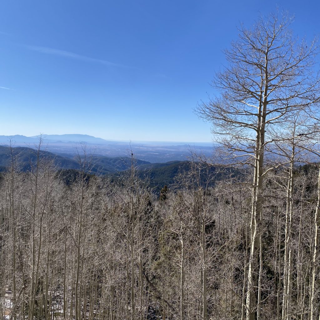 We hiked up a mountain in the Santa Fe National Forest that took our breath away literally and figuratively as one has to acclimatize to the altitude…the air is so clean and the sky a compelling azure blue.