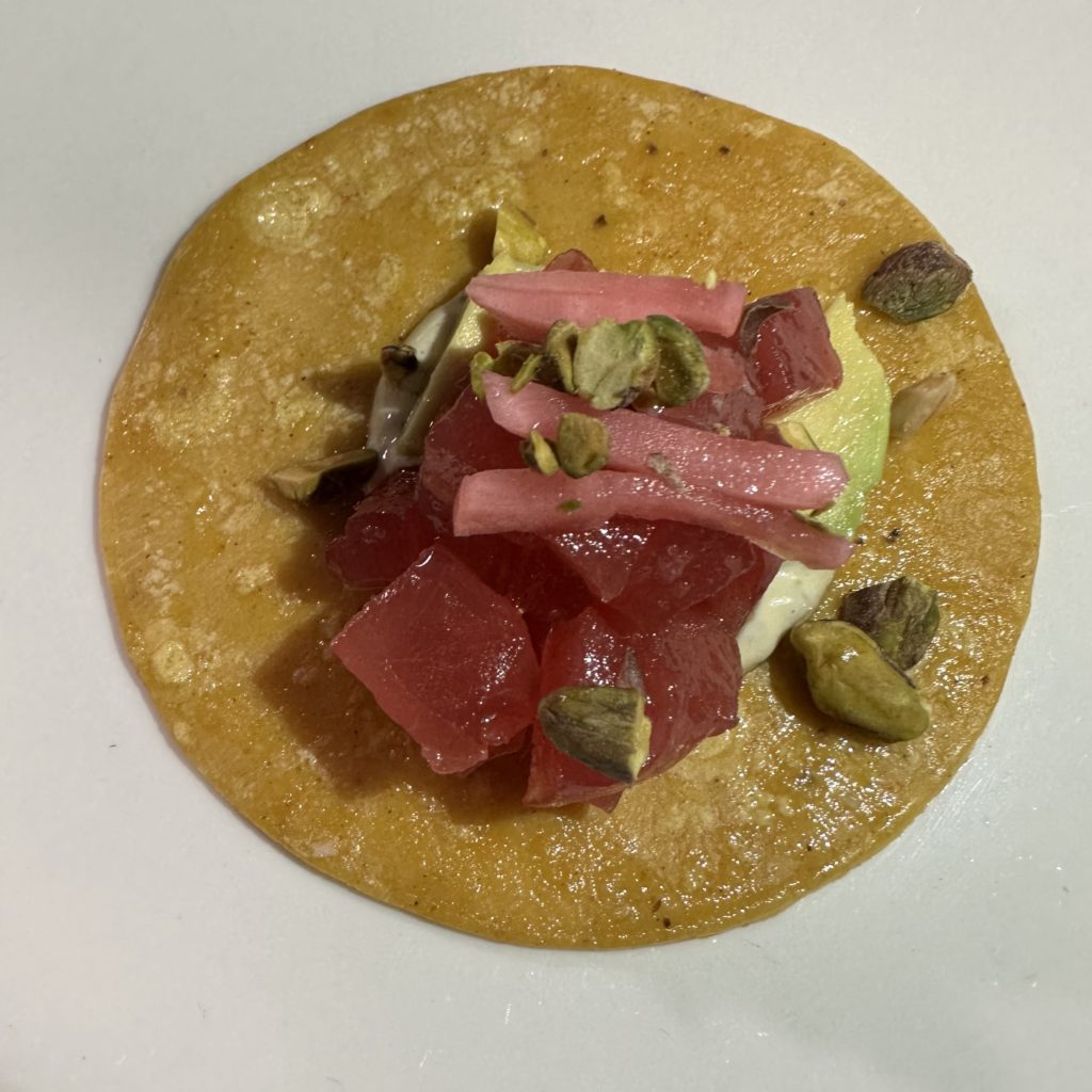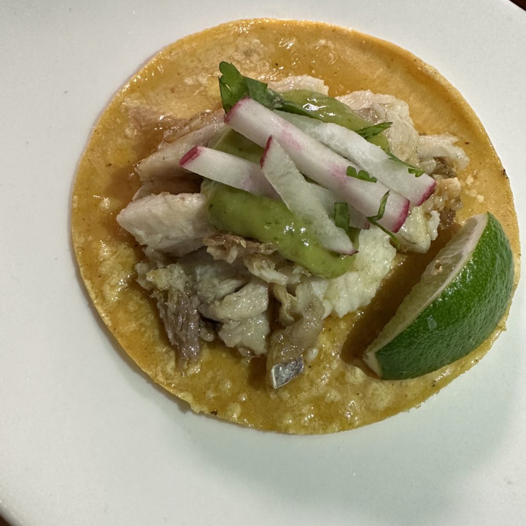The Tuna Taco Crudo was fresh and delectable with Schug aioli (Middle Eastern blend of herbs, chilies and toasted spices), avocado, pickled radish and pistachio ($11). What spoiled it for me was the corn tortilla. I just don’t enjoy the flavor. The special fish taco was very tasty as well, but once again it was the corn taco. I know flour is not trending, but that’s the way I want to wrap.