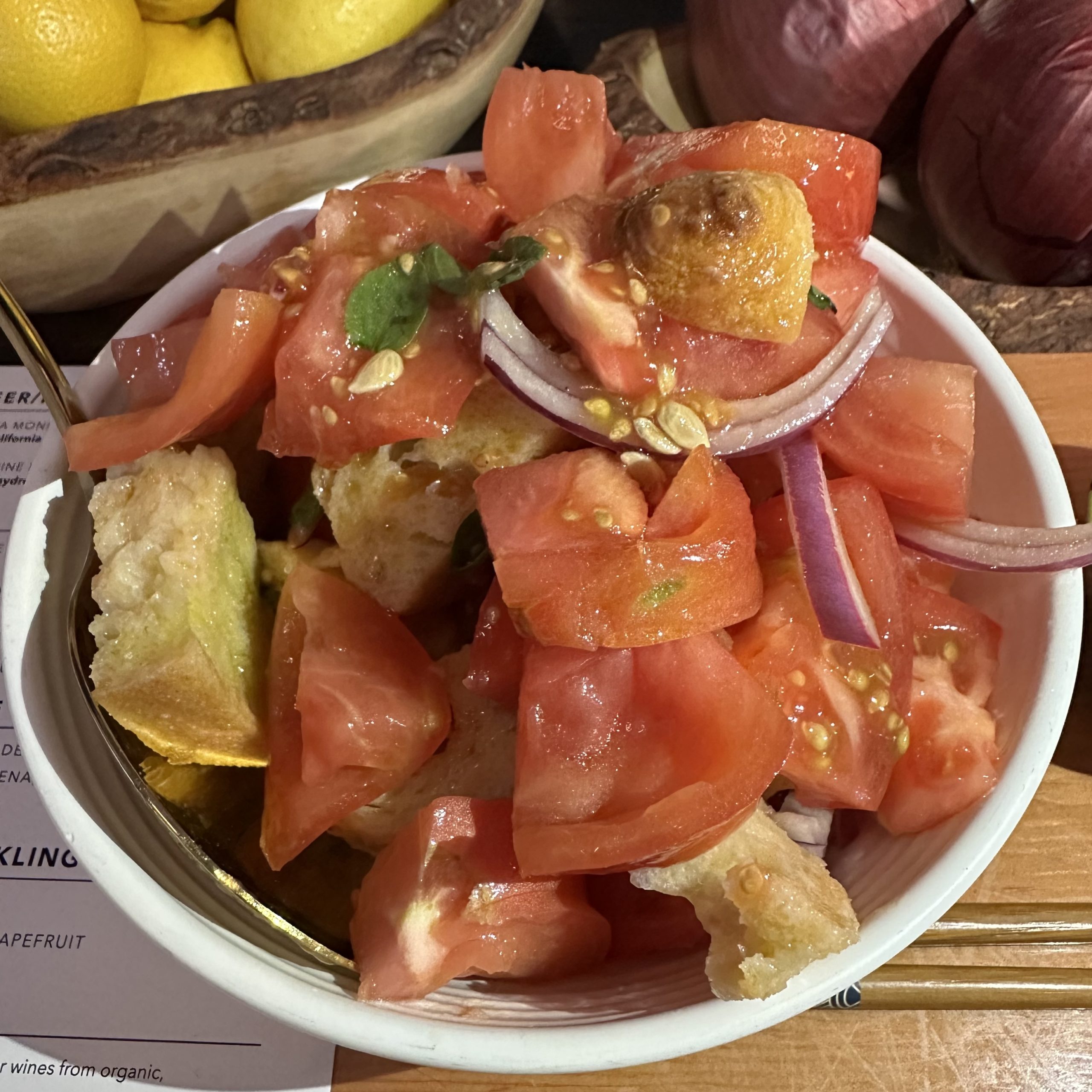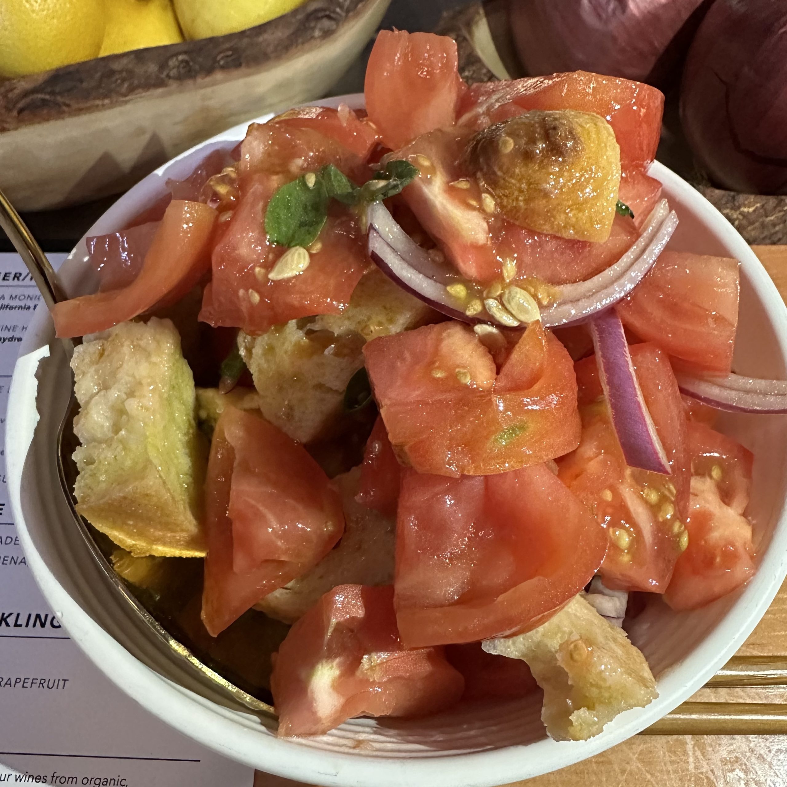 The Tomato Panzanella with red onion, bread and zaatar was spectacularly fresh and well seasoned ($19).