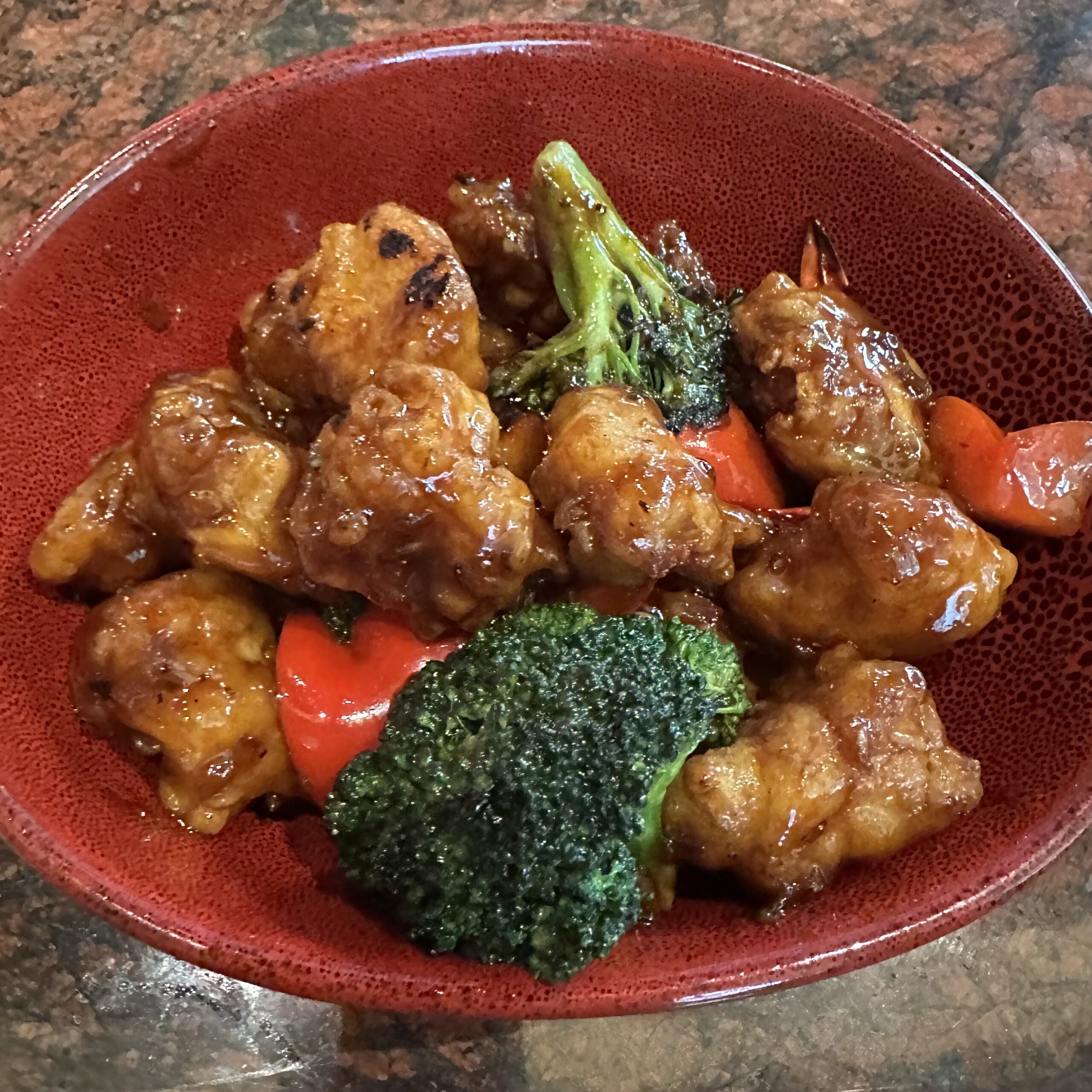 The General Tso chicken bites were fabulous with a light glaze and sauteed broccoli. The tender white meat chicken was very good ($12).