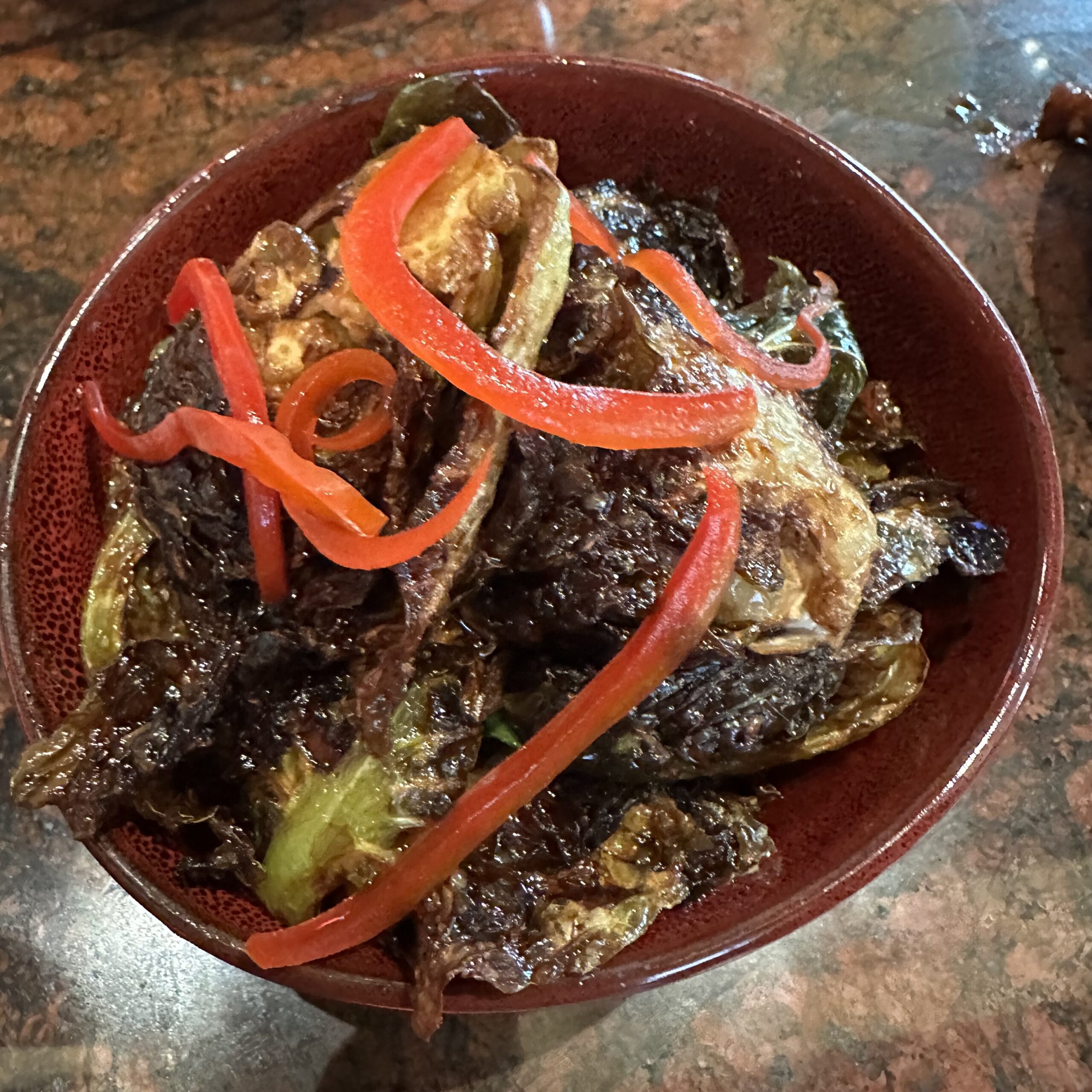 The crisp, flavorful Honey Soy Brussels Sprouts were served piping hot ($6).