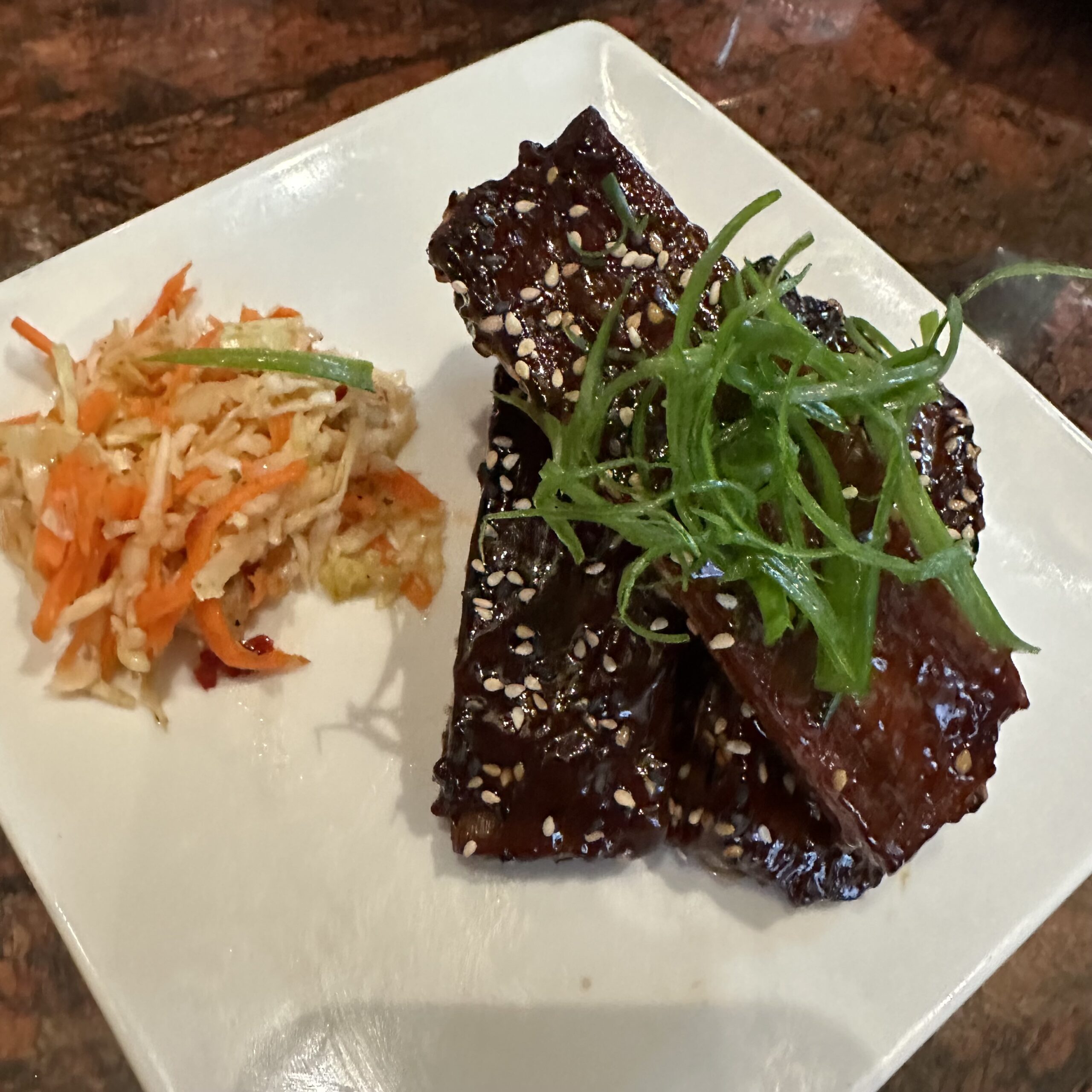 The Chinese Sticky BBQ Ribs were tender and tantalizing. The sticky sauce was finger lickin’ good. They were served with a spicy Sichuan slaw ($9).
