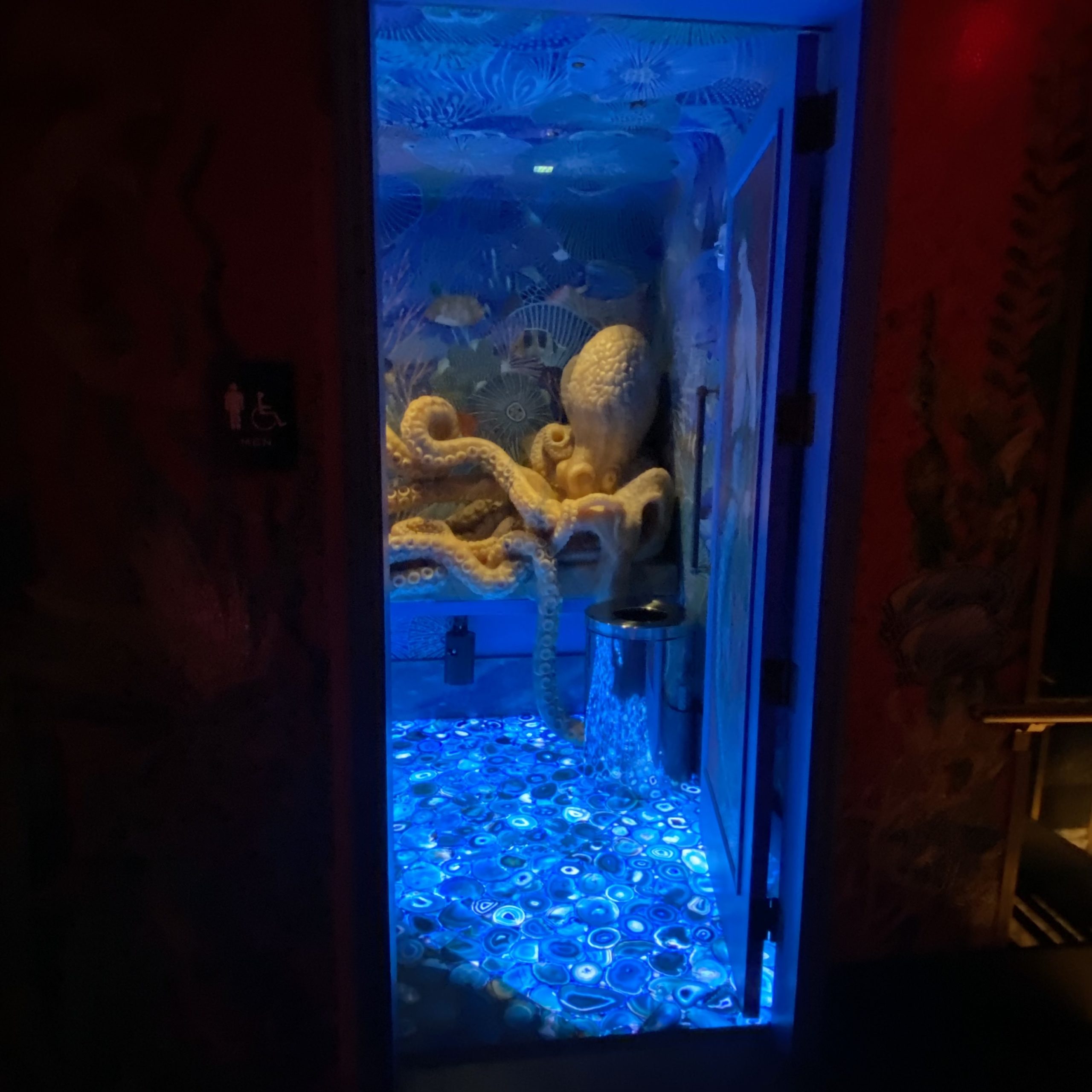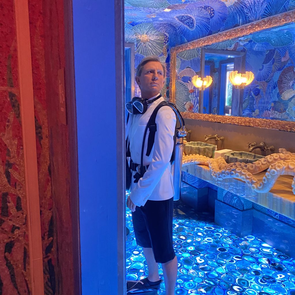 There is a lifelike sculpture of Daniel Craig in the ornate men’s room.