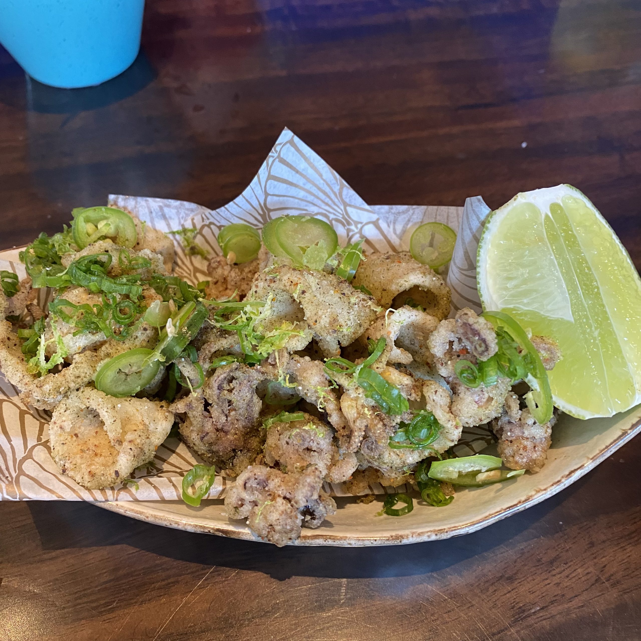 We nibbled on well prepared Steamed Edamame ($8) and tantalizingly crispy Salt & Pepper Squid ($14).