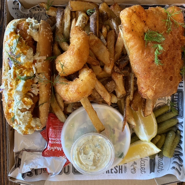 You can order Classic Fish and Chips, spicy or regular, a Shrimp Po Boi on a roll or various combo deals.