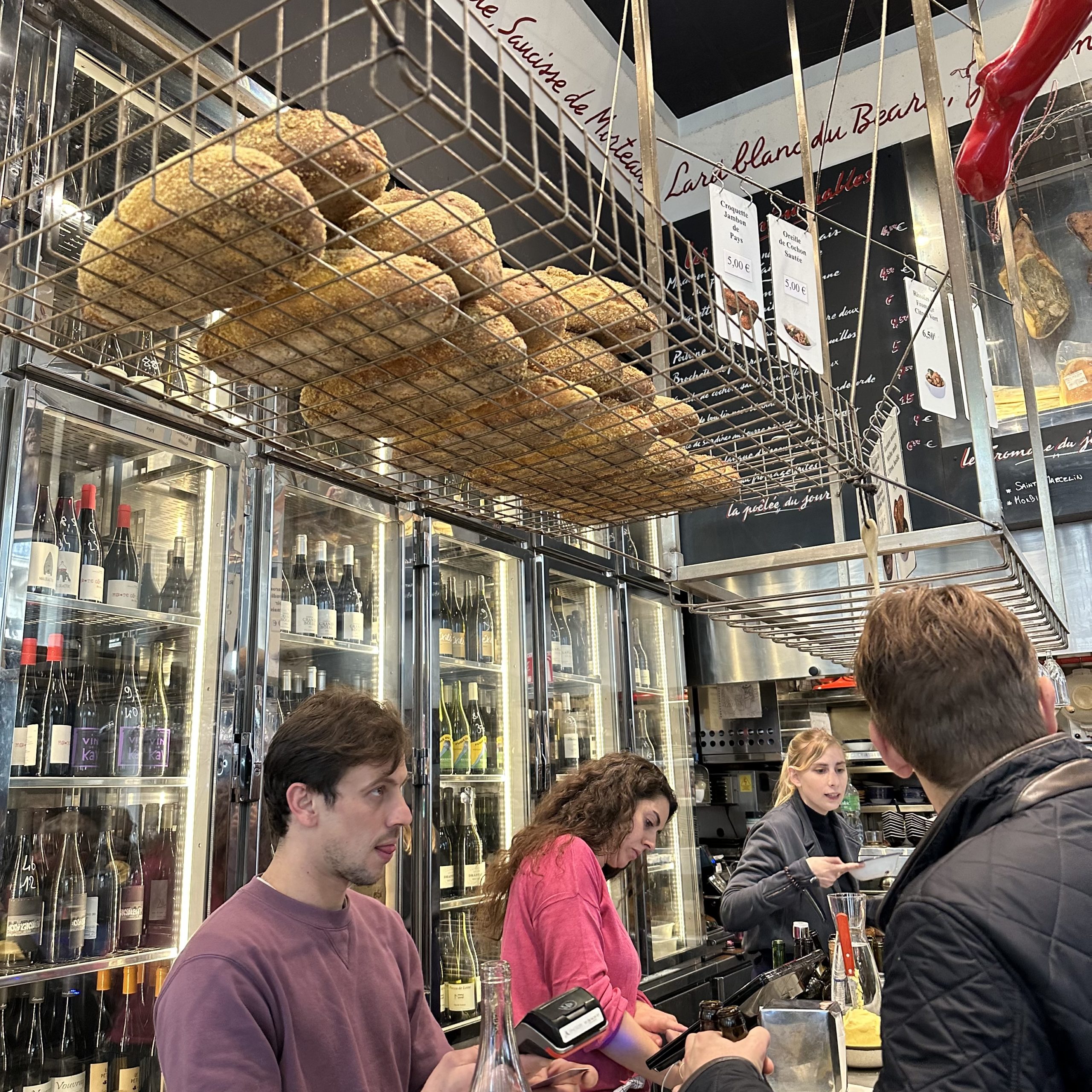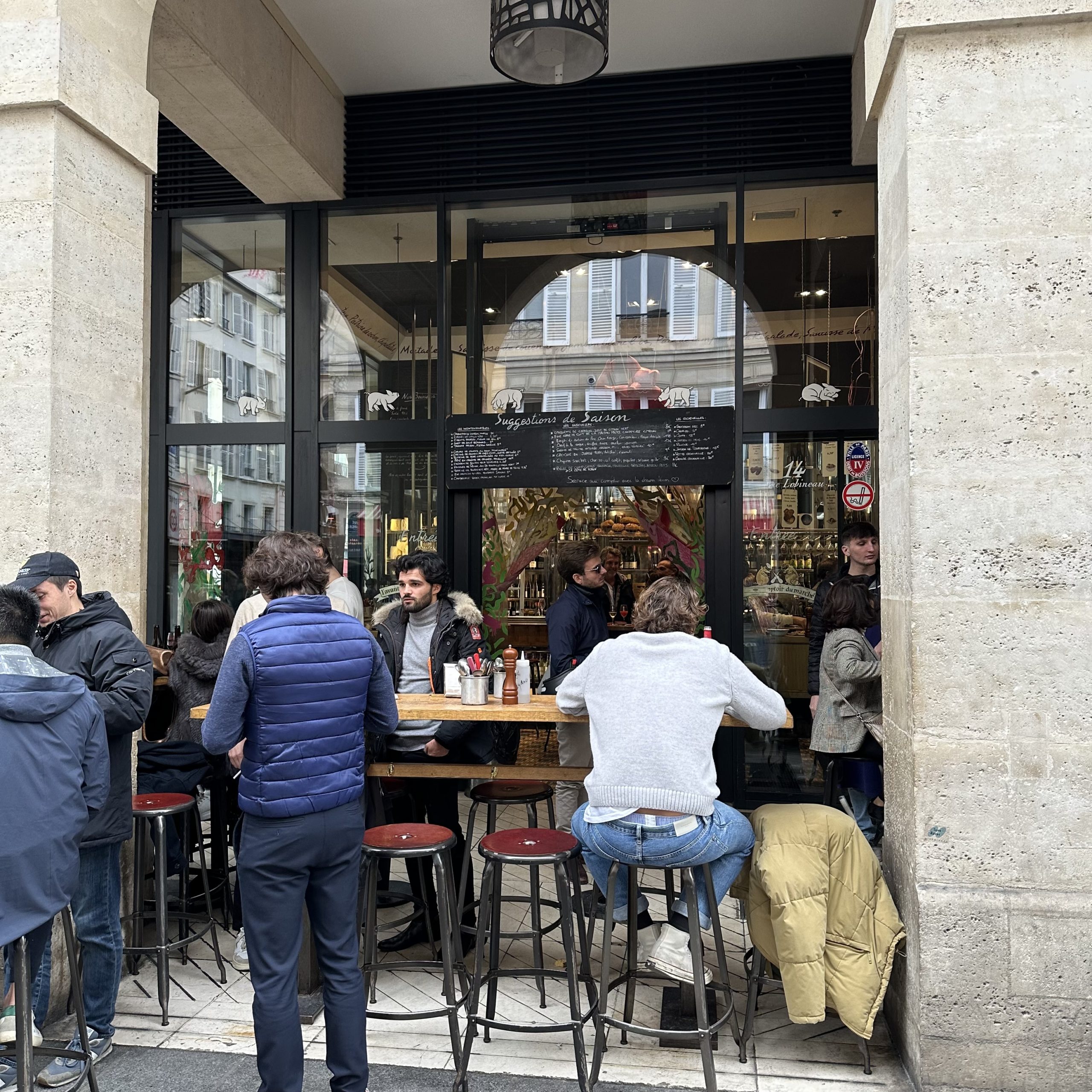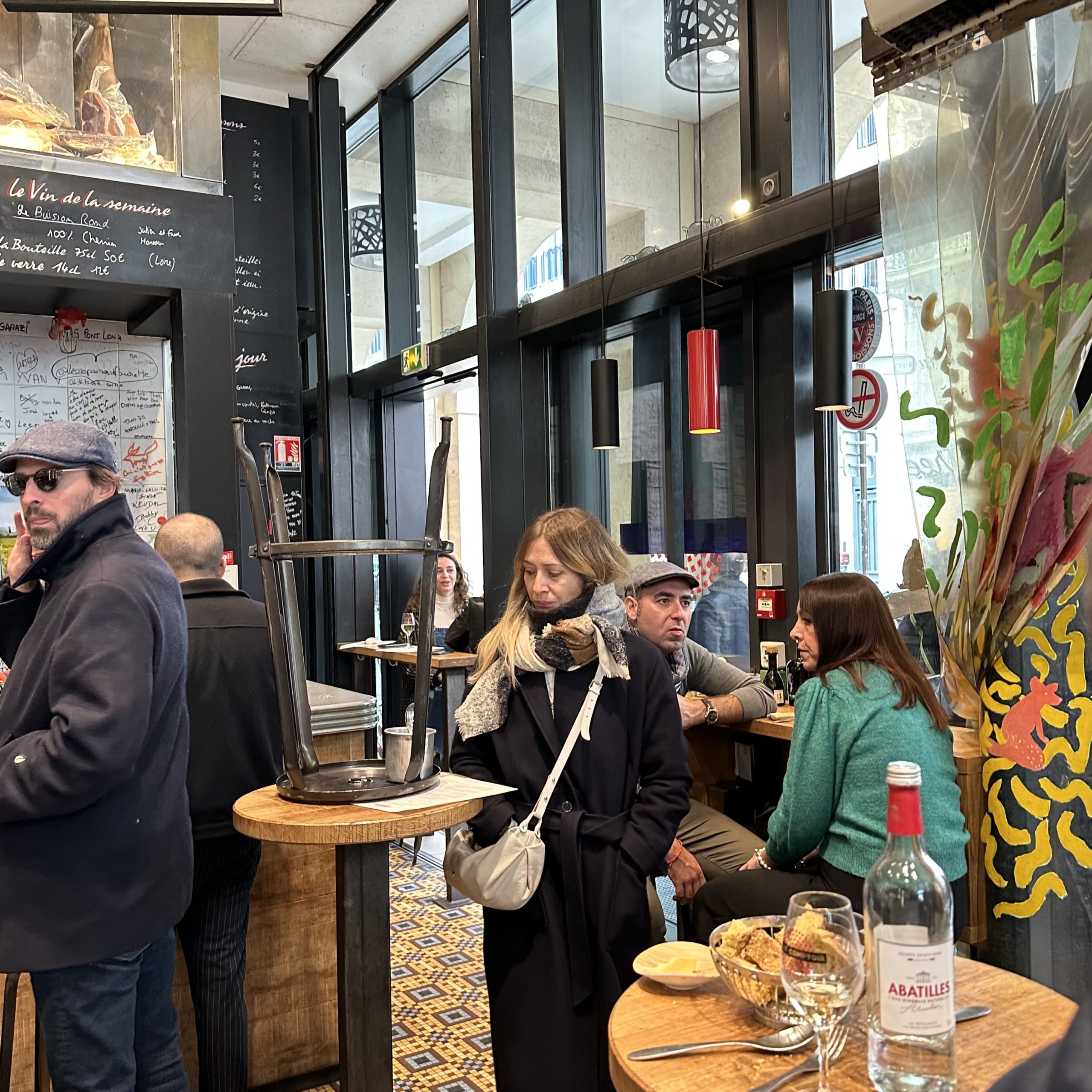 Spent the morning perusing the Schiaparelli exhibit at the Louvre and then took an Uber over to the St. Germain area on the Left Bank to a fun Paris restaurant that features hundreds of organic wines and smallish plates with none over 12 Euros.