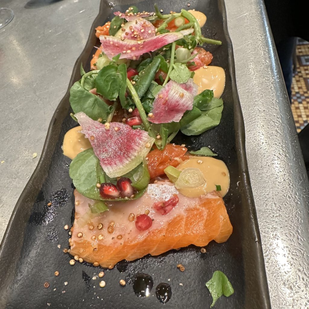 We indulged in sushi, outrageous crispy pork belly, grilled salmon with accompanying amazing mashed potatoes, cheese raviolis and incredible cheeses.